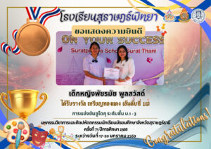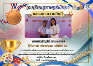 - มอบเกียรติบัตรตัวแทนนักเรียน การแข่งขันงานมหกรรมวิชาการและศิลปหัตถกรรมนักเรียนมัธยมศึกษา จ.สุราษฎร์ธานี ครั้งที่ 73