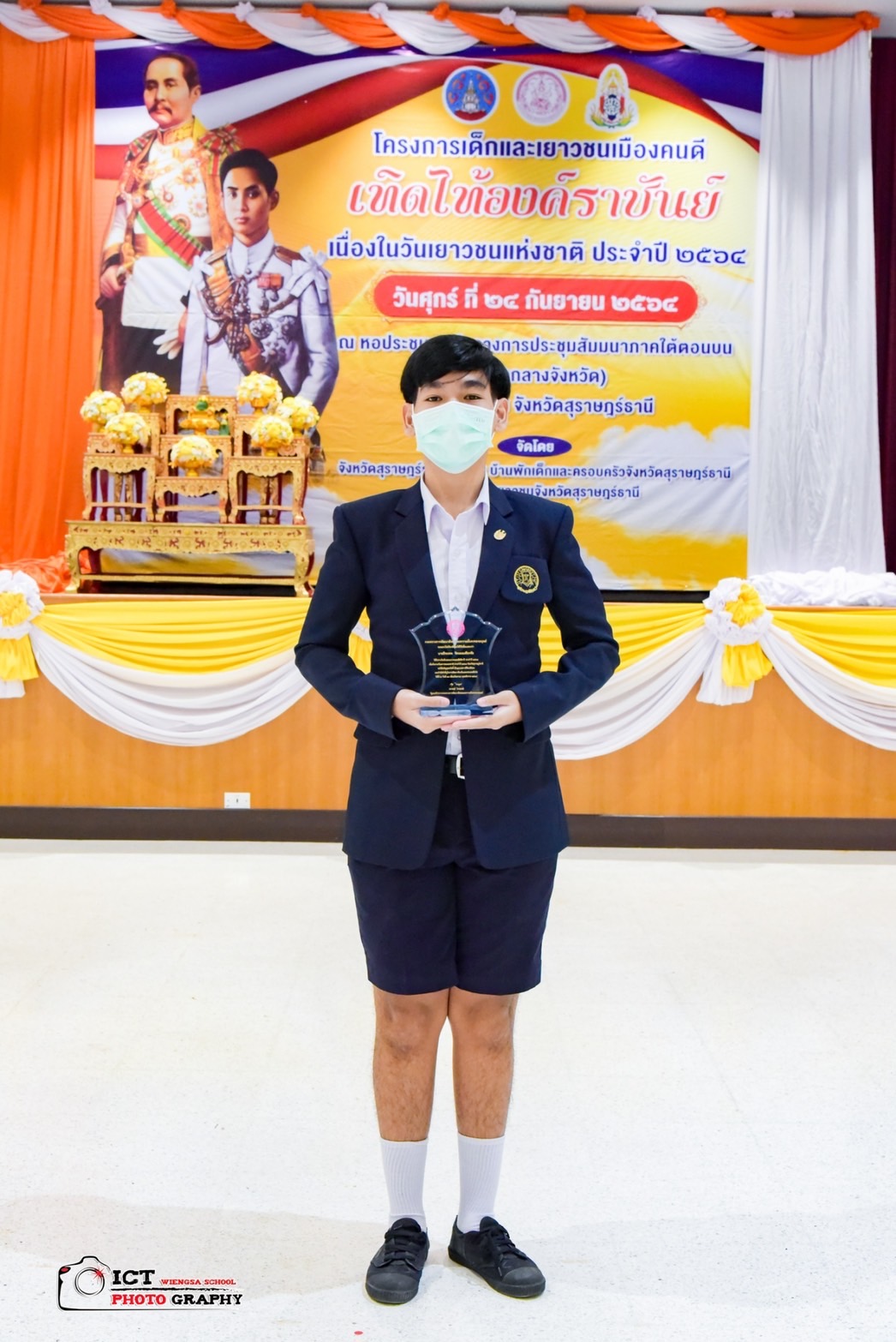 โดย นายธีระเทพ รัตนมณเฑียรชัยและ นายภัทรภน คงรอด พี่ที่ปรึกษาสภานักเรียนปี 2564 ได้รับคัดเลือกให้เป็น เด็กและเยาวชนคนดี ศรีตาปี ประจำปี 2564 สาขาพัฒนาเยาวชนบำเพ็ญประโยชน์ และส่งเสริมการมีส่วนร่วมของเยาวชน เนื่องในวันเยาวชนแห่งชาติจังหวัดสุราษฎร์ธานี