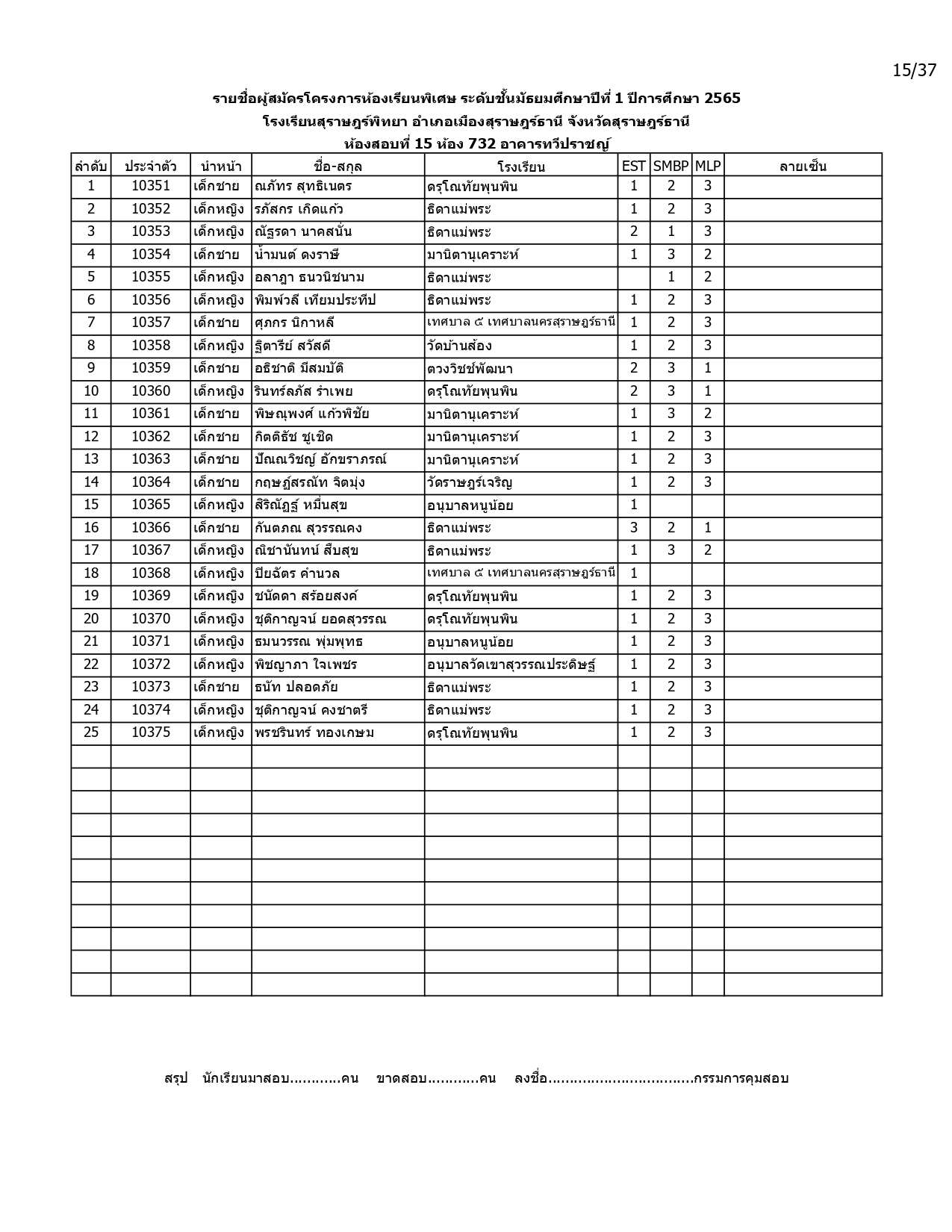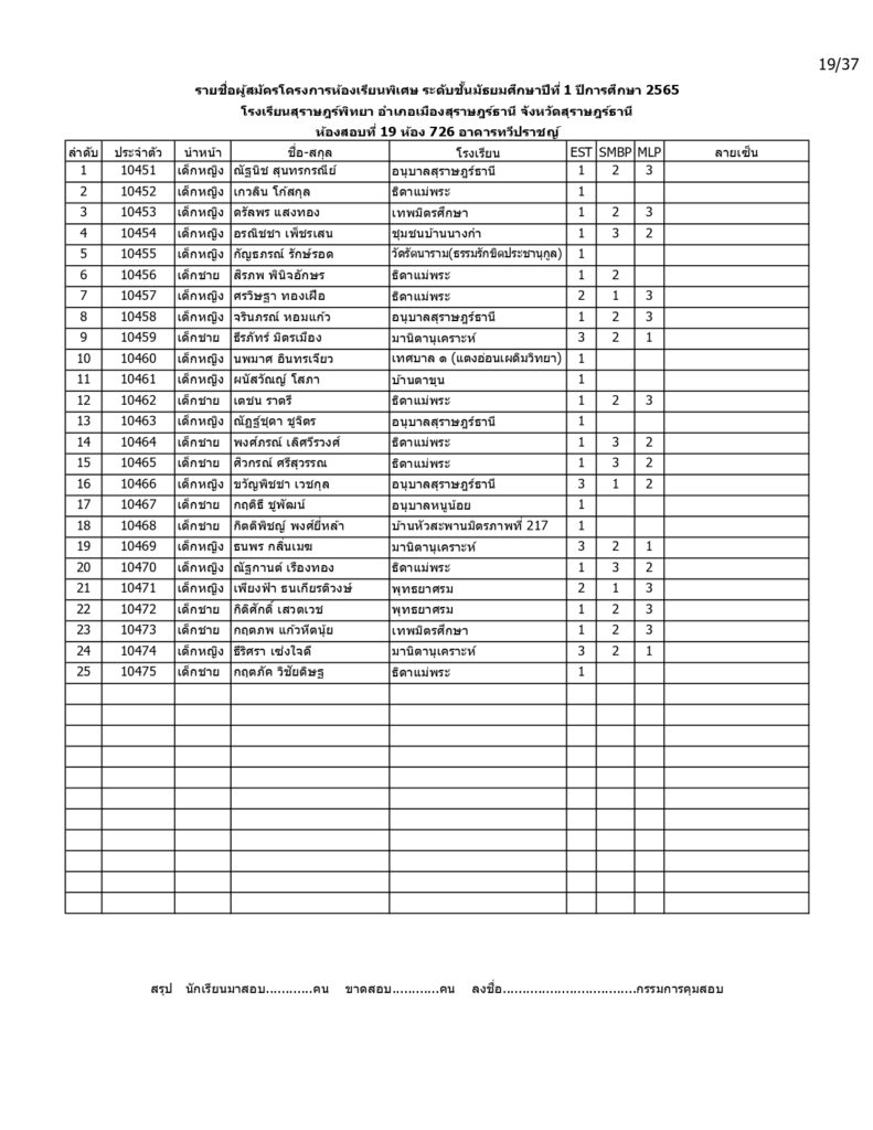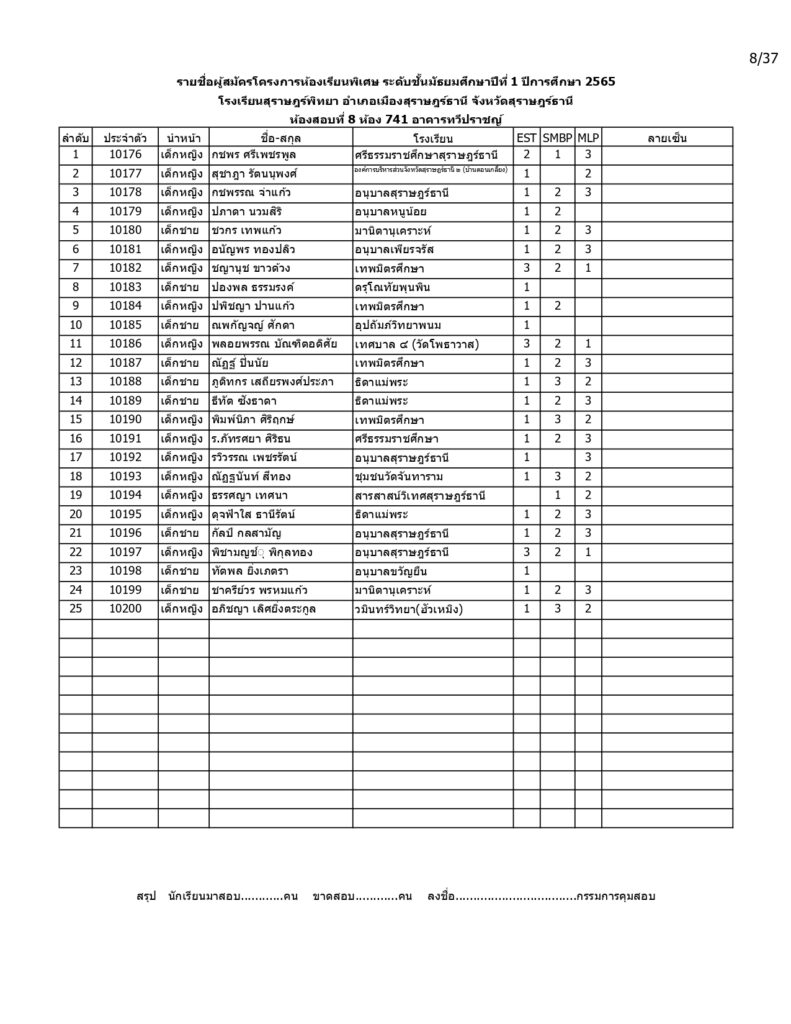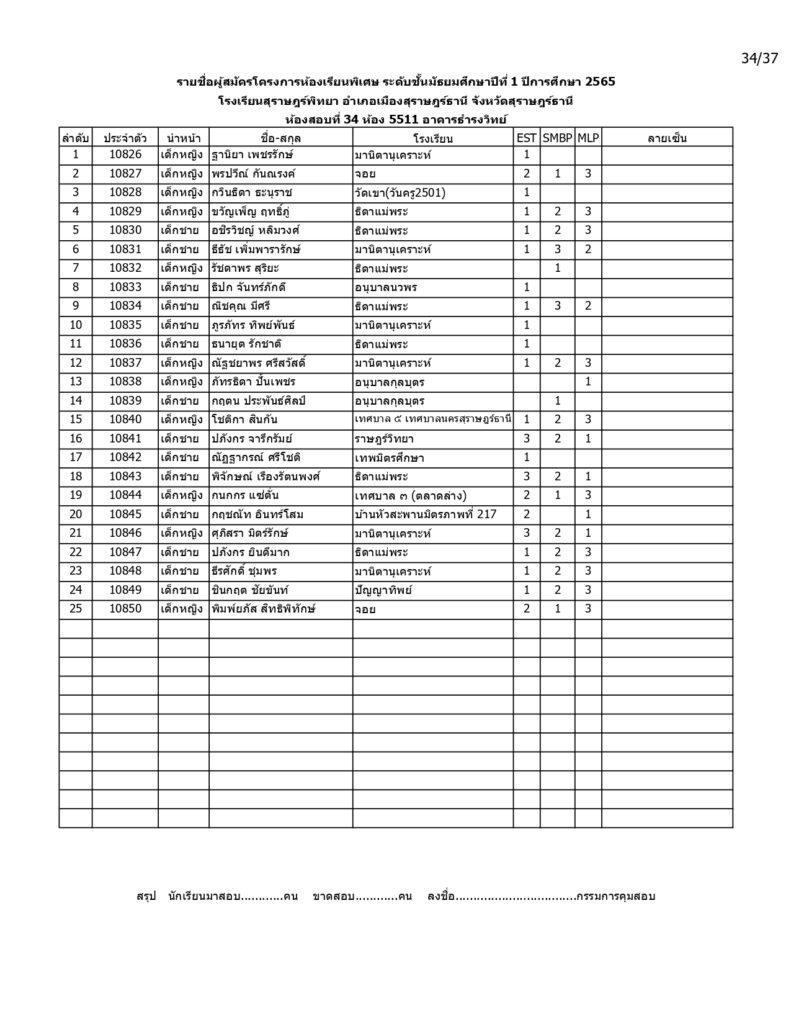 ประกาศรายชื่อผู้มีสิทธิ์สอบคัดเลือกเข้าศึกษาต่อชั้นมัธยมศึกษาปีที่ 1 ปีการศึกษา 2565 ประเภทโครงการห้องเรียนพิเศษ