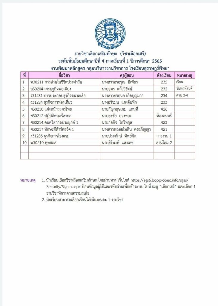 ประชาสัมพันธ์การเลือกวิชาเสริมทักษะ (วิชาเลือกเสรี) ประจำภาคเรียนที่ 1 ปีการศึกษา 2565 / ข่าวประชาสัมพันธ์ / By สุธน ภักดี Post Views: 422