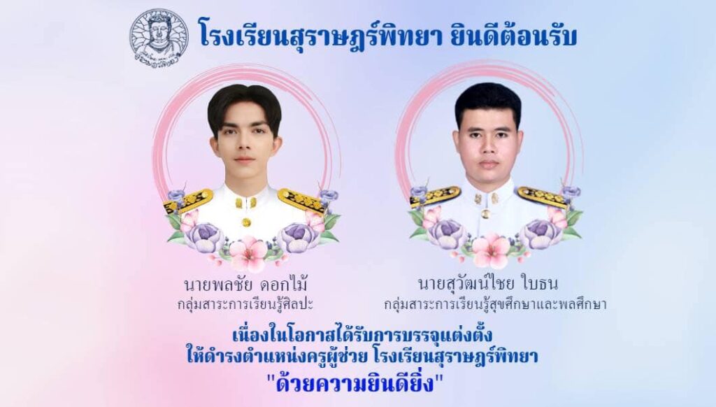 โรงเรียนสุราษฎร์พิทยา ยินดีต้อนรับคุณครูทั้ง 2 ท่าน ด้วยความยินดียิ่ง / ข่าวประชาสัมพันธ์ / By สุธน ภักดี Post Views: 29