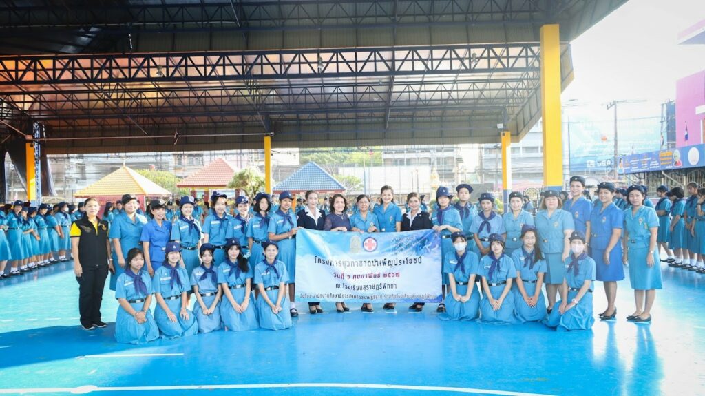 นางสาวชนิดาภา เวชกุล รองผู้อำนวยการกลุ่มบริหารงานวิชาการ ภาคีเครือข่าย คณะครู และนักเรียนยุวกาชาดชั้นมัธยมศึกษาปีที่ 3