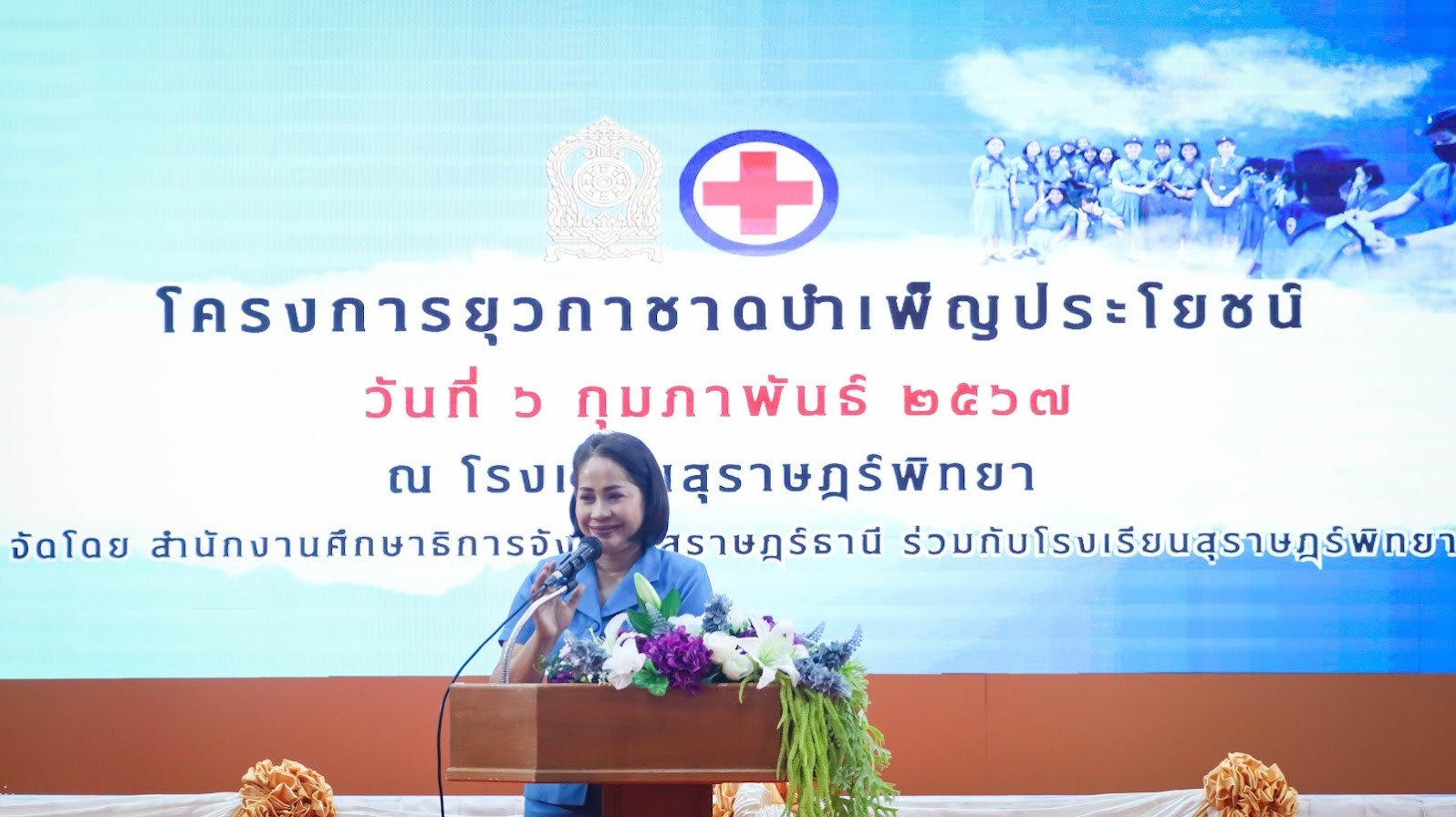 ร่วมพิธีเปิดกิจกรรมโครงการยุวกาชาดบำเพ็ญประโยชน์ จัดโดยสำนักงานศึกษาธิการจังหวัดสุราษฎร์ธานี ร่วมกับธนาคารเลือด
