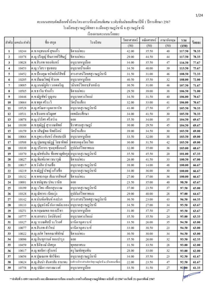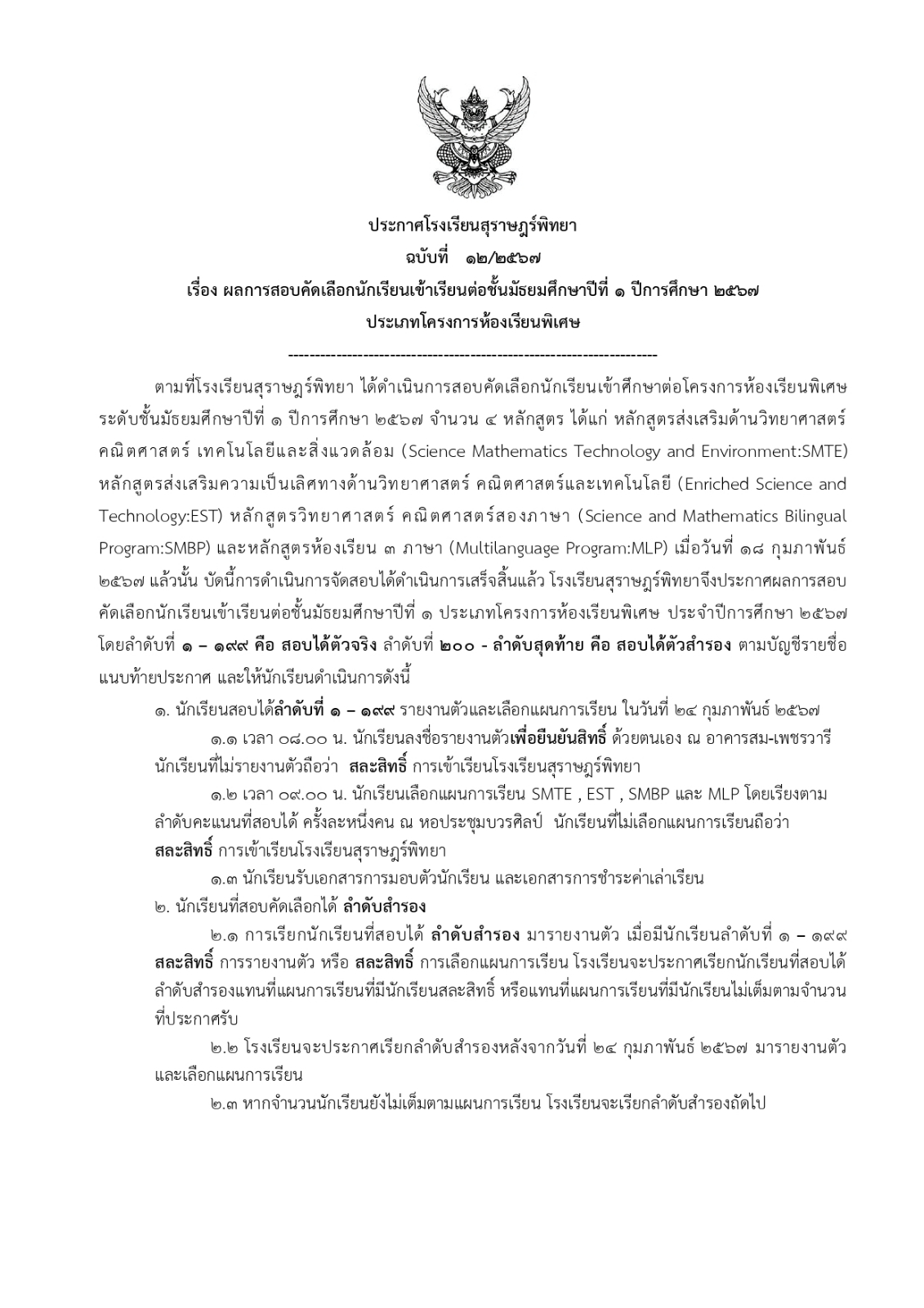 ประกาศผลการสอบคัดเลือก ม.1 โครงการห้องเรียนพิเศษ 2567 / ข่าวประกาศ, โครงการห้องเรียนพิเศษ / By สุธน ภักดี ประกาศผลการสอบคัดเลือกนักเรียนเข้าเรียนชั้น ม.1 โครงการห้องเรียนพิเศษ ปีการศึกษา 2567 โรงเรียนสุราษฎร์พิทยา Post Views: 7,365