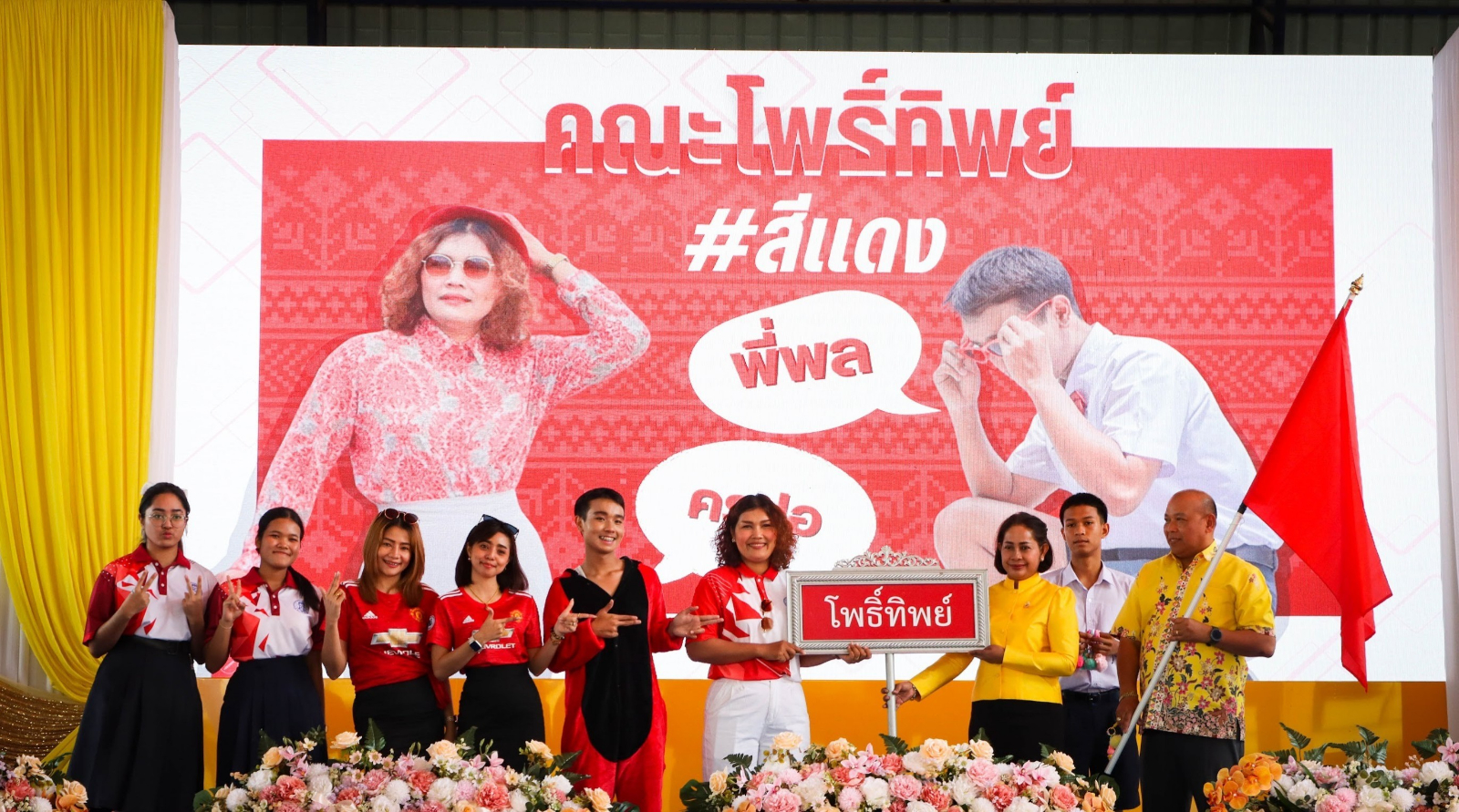 ร่วมพิธีรับมอบธงประจำสีพร้อมแนะนำประธานและคณะทำงานของแต่ละคณะสีประจำงานกีฬาสีสุราษฎร์พิทยาเกมส์ ปีการศึกษา 2567