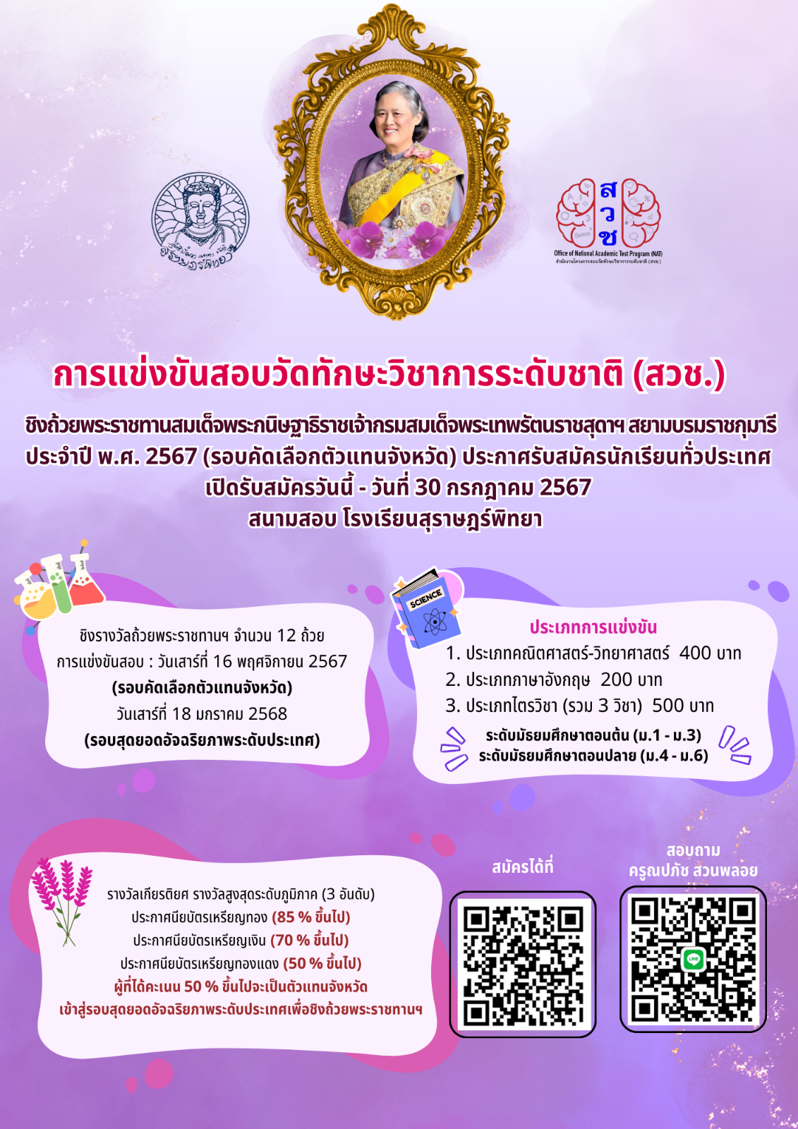เปิดรับสมัครสอบ การแข่งขันสอบวัดทักษะวิชาการระดับชาติ (สวช.) ชิงถ้วยพระราชทาน