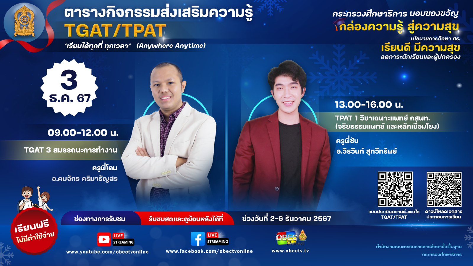 ส่งเสริมและพัฒนาการเรียนรู้ของนักเรียนชั้น ม.6 “กล่องความรู้ สู่ความสุข (TGAT TPAT) / ข่าวประชาสัมพันธ์ / By สุธน ภักดี กิจกรรมส่งเสริมและพัฒนาการเรียนรู้ของนักเรียนชั้น ม.6 “กล่องความรู้ สู่ความสุข (TGAT TPAT) วันที่ 2-6 ธันวาคม 2567 รูปแบบออนไลน์ Post Views: 59
