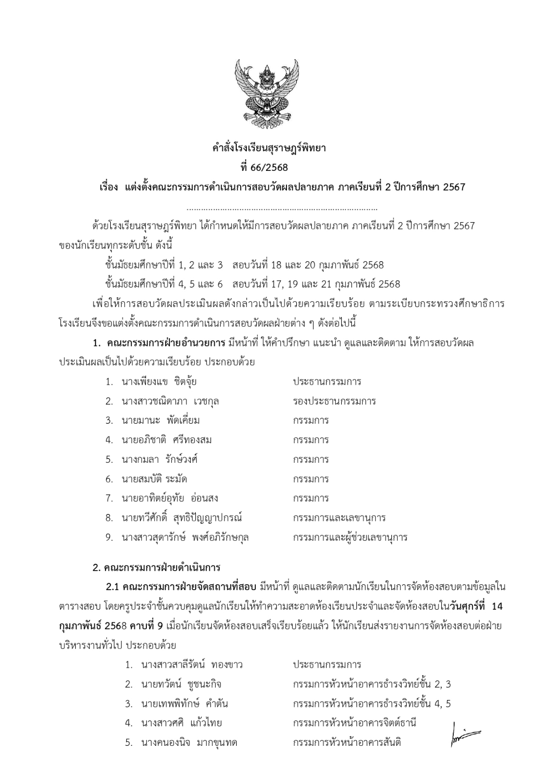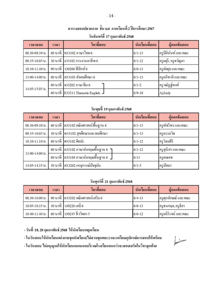 ตารางสอบวัดผลปลายภาค 2/2567 วันที่ 17-21 กุมภาพันธ์ พ.ศ. 2568 / ข่าวประกาศ / By สุธน ภักดี Post Views: 327