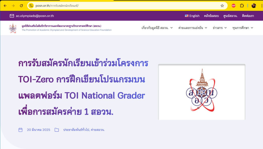 มูลนิธิ สอวน. ขอเชิญนักเรียนระดับมัธยมศึกษาที่สนใจ พัฒนาทักษะการเขียนโปรแกรม เข้าร่วมโครงการ TOI-Zero