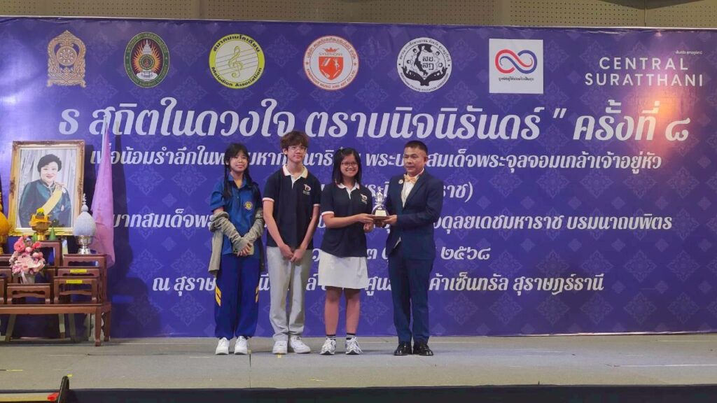 วันที่ 12 ตุลาคม 2568 ณ สุราษฎร์ธานีฮอลล์ ขั้น 4 ศูนย์การค้าเซ็นทรัล สุราษฎร์ธานี ผลการเเข่งขันได้รับรางวัลความสามารถ