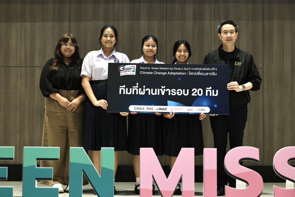 ผ่านการคัดเลือกเข้าร่วมโครงการ Green Mission by Chula x GULF ภารกิจรักษ์ยั่งยืน ปีที่ 2 “Climate change adaptation : โลกเปลี่ยน เราปรับ” รอบ 20 ทีมสุดท้ายจาก 798 ทีมทั่วประเทศ ในวันที่ 27-31 ตุลาคม 2568 ณ ศูนย์เครือข่ายการเรียนรู้เพื่อภูมิภาค จุฬาลงกรณ์มหาวิทยาลัย จังหวัดสระบุรี