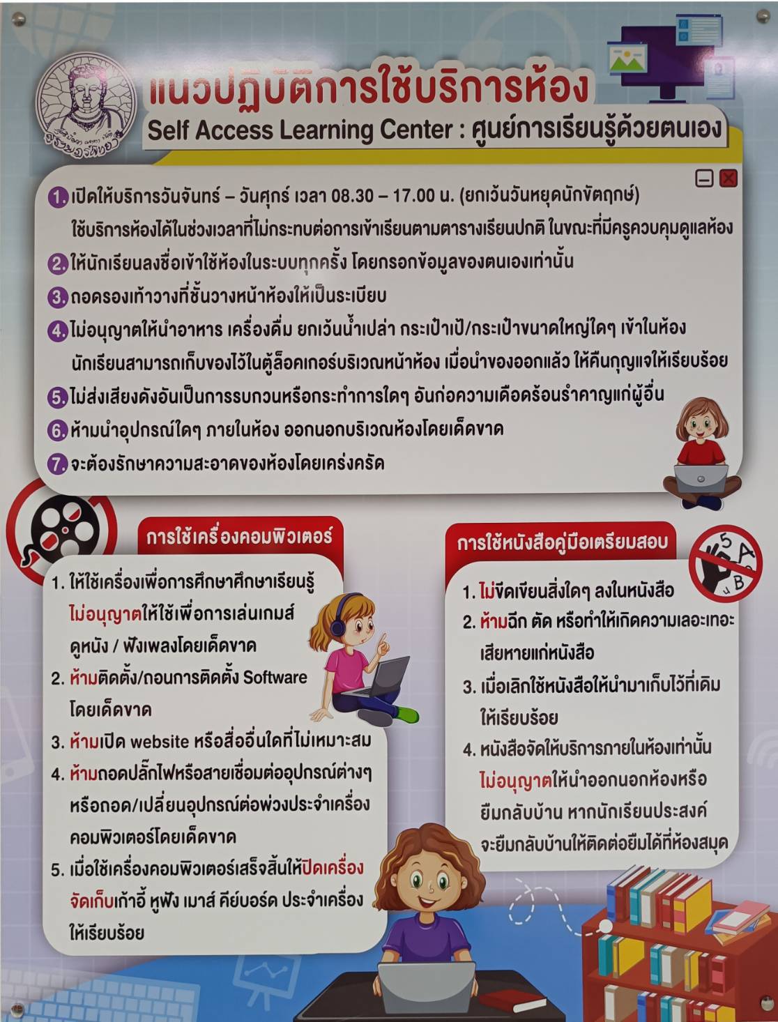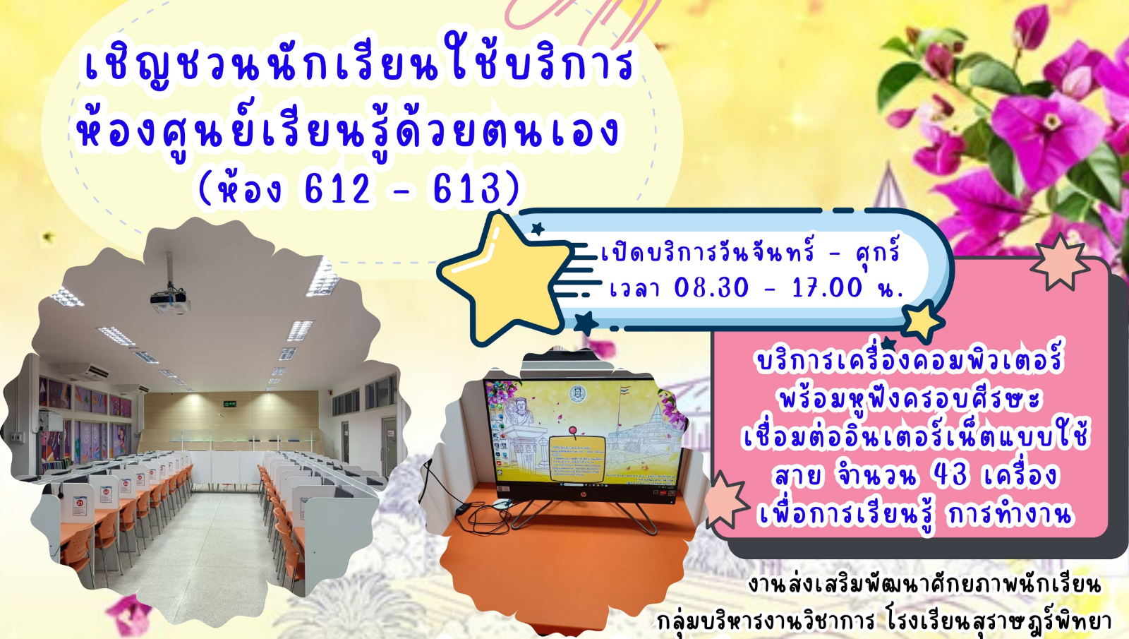 เชิญชวนนักเรียนใช้บริการห้องศูนย์การเรียนรู้ด้วยตนเอง (ห้อง 612 – 613) เปิดบริการวันจันทร์ – ศุกร์ เวลา 08.30 – 17.00 น.