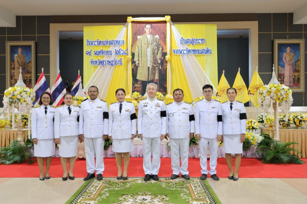 วันศุกร์ที่ 14 พฤศจิกายน 2568 เวลา 09.00 น. นางผกา สามารถ ผู้อํานวยการโรงเรียนสุราษฎร์พิทยา พร้อมด้วยคณะผู้บริหารและคณะครูโรงเรียนสุราษฎร์พิทยา ร่วมพิธีวางพุ่มดอกไม้ถวายราชสักการะ น้อมรำลึกในพระมหากรุณาธิคุณและแสดงความจงรักภักดี