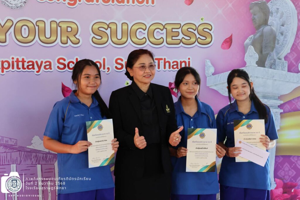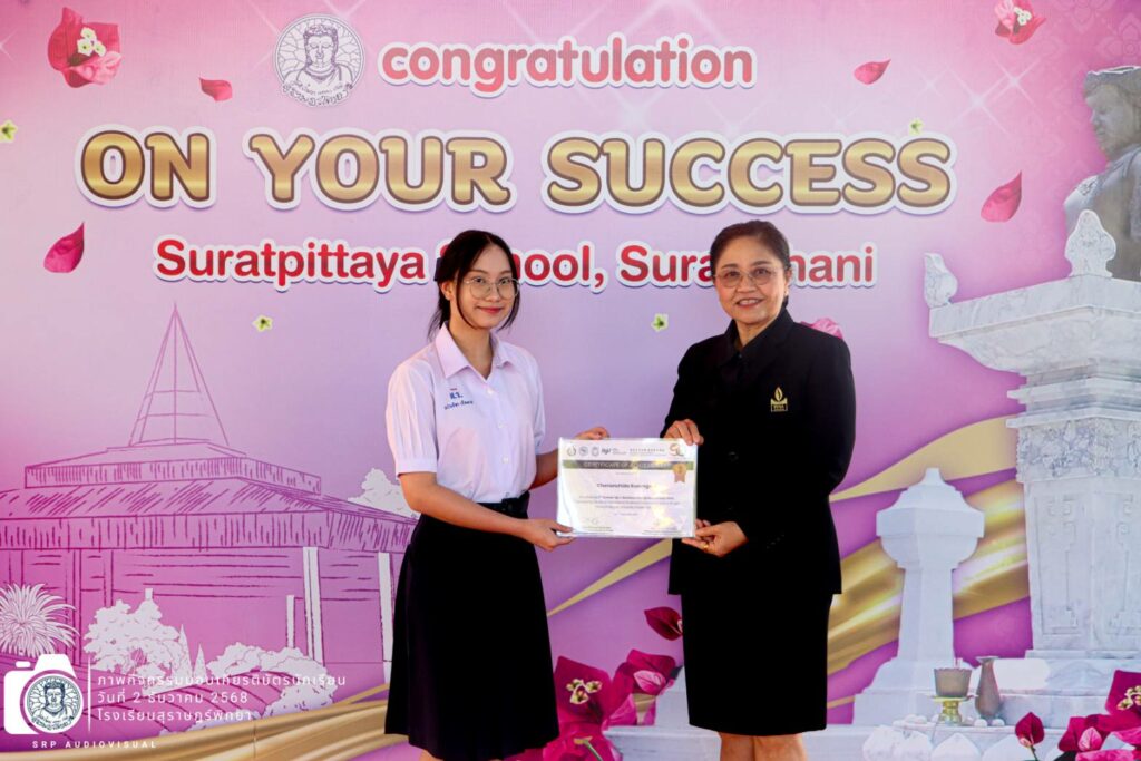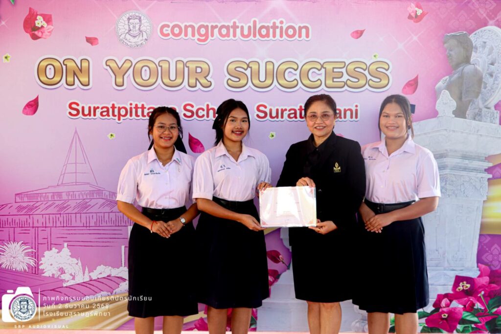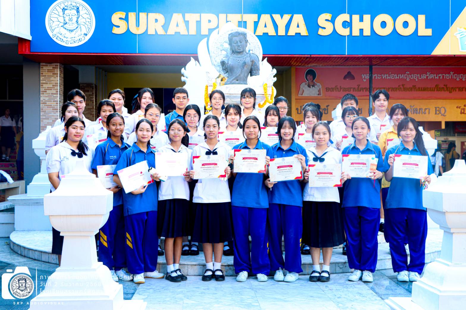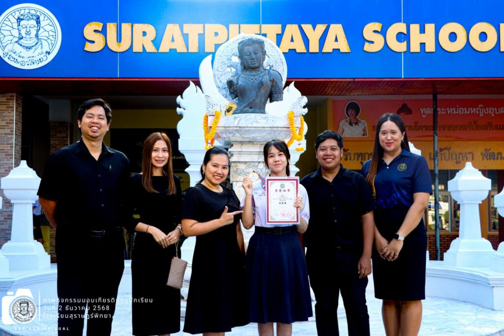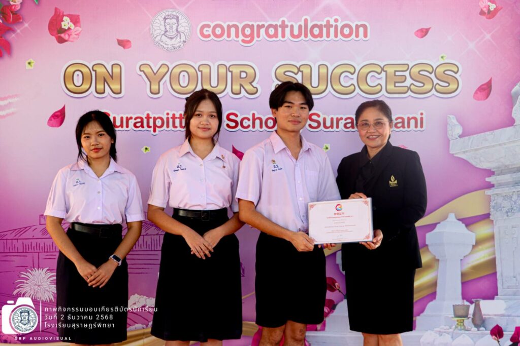 วันอังคารที่ 2 ธันวาคม 2568 เวลา 8:00 น. นางผกา สามารถ ผู้อำนวยการโรงเรียนสุราษฎร์พิทยา มอบเกียรติบัตรให้แก่นักเรียนที่เข้าร่วมแข่งขันของกลุ่มสาระการเรียนรู้ภาษาไทยและกลุ่มสาระการเรียนรู้ภาษาต่างประเทศที่ 2 (ภาษาจีน) ณ อาคาร สม-เพชรวารี โรงเรียนสุราษฎร์พิทยา