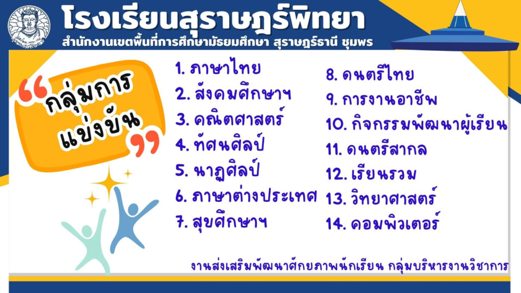 มหกรรมวิชาการมัธยมศึกษา จังหวัดสุราษฎร์ธานี วันที่ 19-20 มกราคม 2559 ณ โรงเรียนศูนย์การแข่งขัน จังหวัดสุราษฎร์ธานี