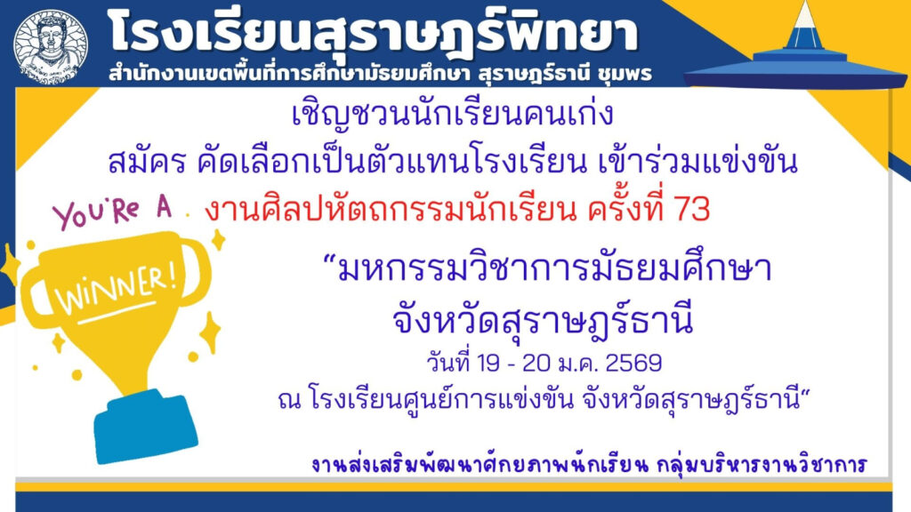 เชิญชวนนักเรียน สมัครคัดเลือกเป็นตัวแทนโรงเรียน เข้าร่วมแข่งขัน “งานศิลปหัตถกรรมนักเรียน ครั้งที่ 73”