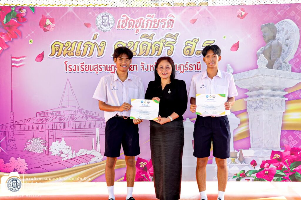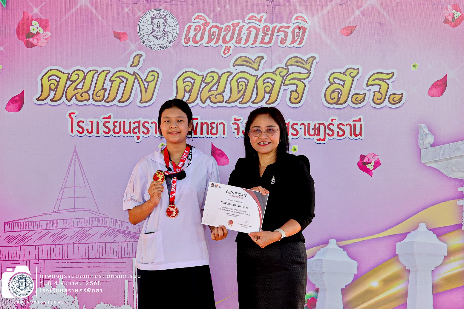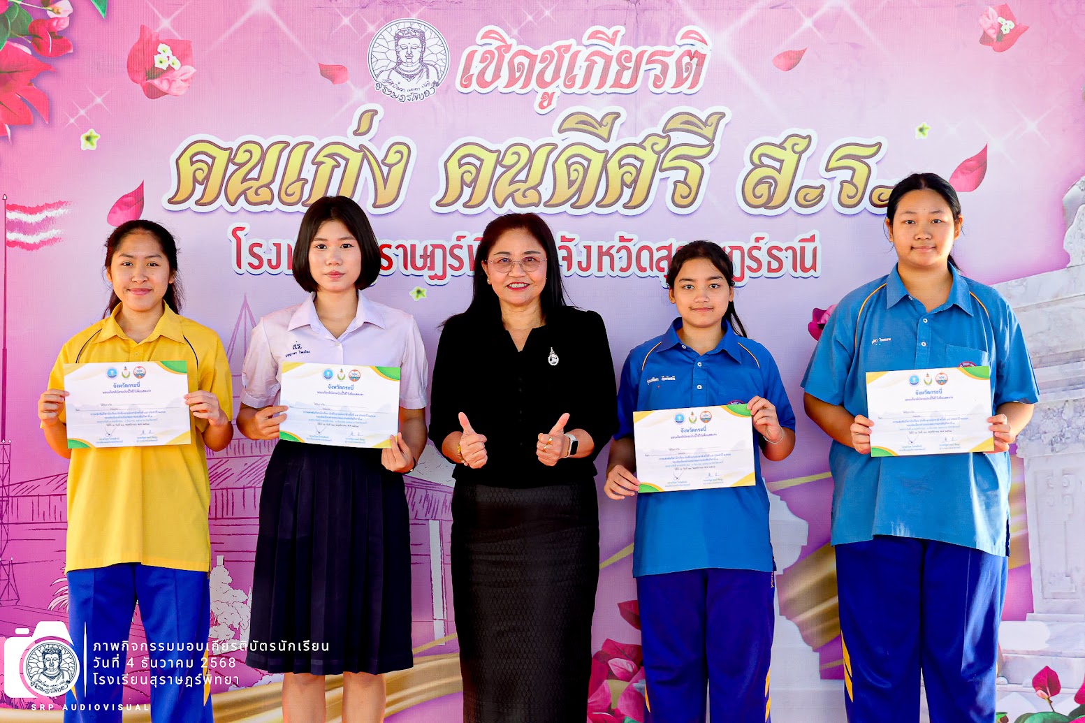 มอบรางวัลและเกียรติบัตร นักเรียนจากกลุ่มสาระการเรียนรู้สุขศึกษาและพลศึกษา / ข่าวประชาสัมพันธ์ / By สุธน ภักดี วันอังคารที่ 4 ธันวาคม 2568 เวลา 8:00 น. นางผกา สามารถ ผู้อำนวยการโรงเรียนสุราษฎร์พิทยา มอบรางวัลและเกียรติบัตรให้แก่นักเรียนที่เข้าร่วมแข่งขันของกลุ่มสาระการเรียนรู้สุขศึกษาและพลศึกษา ณ อาคาร สม-เพชรวารี โรงเรียนสุราษฎร์พิทยา ดูภาพฉบับเต็มคลิกที่นี่ Post Views: 2