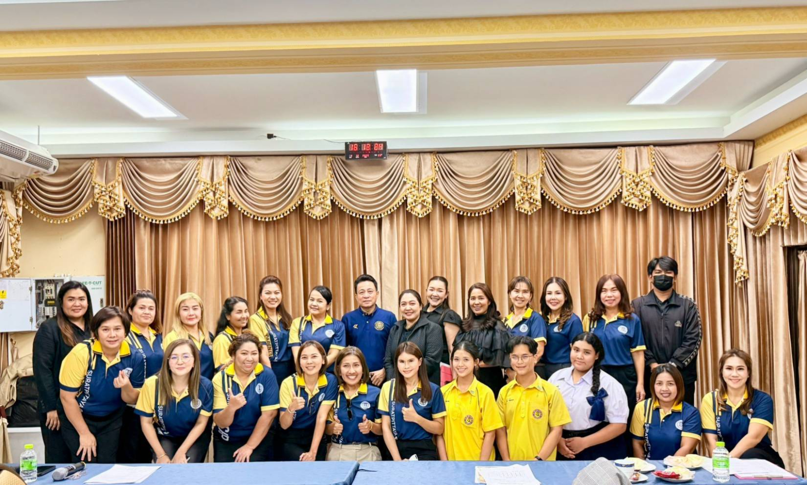 นางผกา สามารถ ผู้อำนวยการโรงเรียนสุราษฎร์พิทยา พร้อมด้วย นายอภิชาติ ศรีทองสม รองผู้อำนวยการกลุ่มบริหารงานทั่วไป
