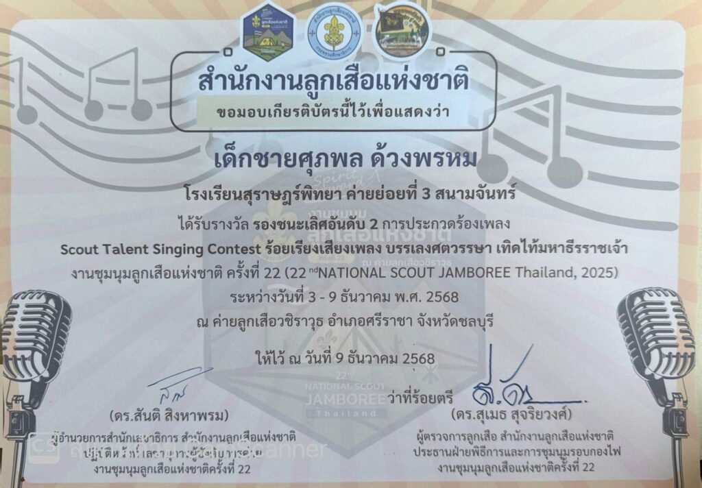 งานชุมนุมลูกเสือแห่งชาติ ครั้งที่ 22 (NATIONAL SCOUT JAMBOREE THAILAND, 2025) ระหว่างวันที่ 3-9 ธันวาคม 2568