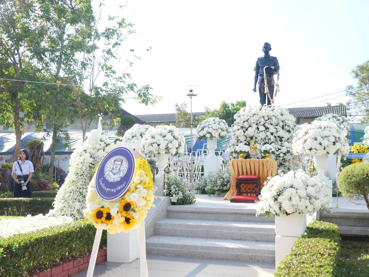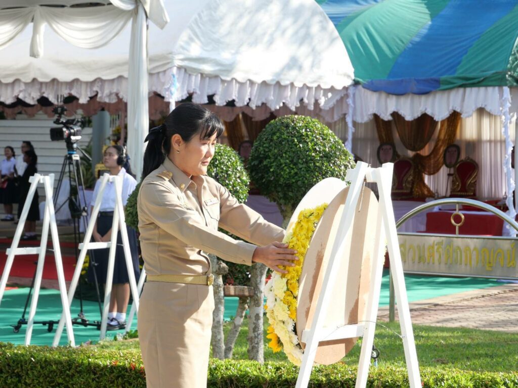 คณะครู และภาคีเครือข่ายโรงเรียนสุราษฎร์พิทยา ร่วมวางพวงมาลาสักการะอนุสาวรีย์ครูลำยอง วิศุภกาญจน์ เนื่องในงาน “วันวิญญาณ” ประจำปี 2568 โดยมี นายจุมพฏ วรรณฉัตรสิริ ผู้ว่าราชการจังหวัดสุราษฎร์ธานี เป็นประธานในพิธี ณ ลานอนุสาวรีย์ครูลำยอง วิศุภกาญจน์ โรงเรียนสุราษฎร์ธานี จังหวัดสุราษฎร์ธานี