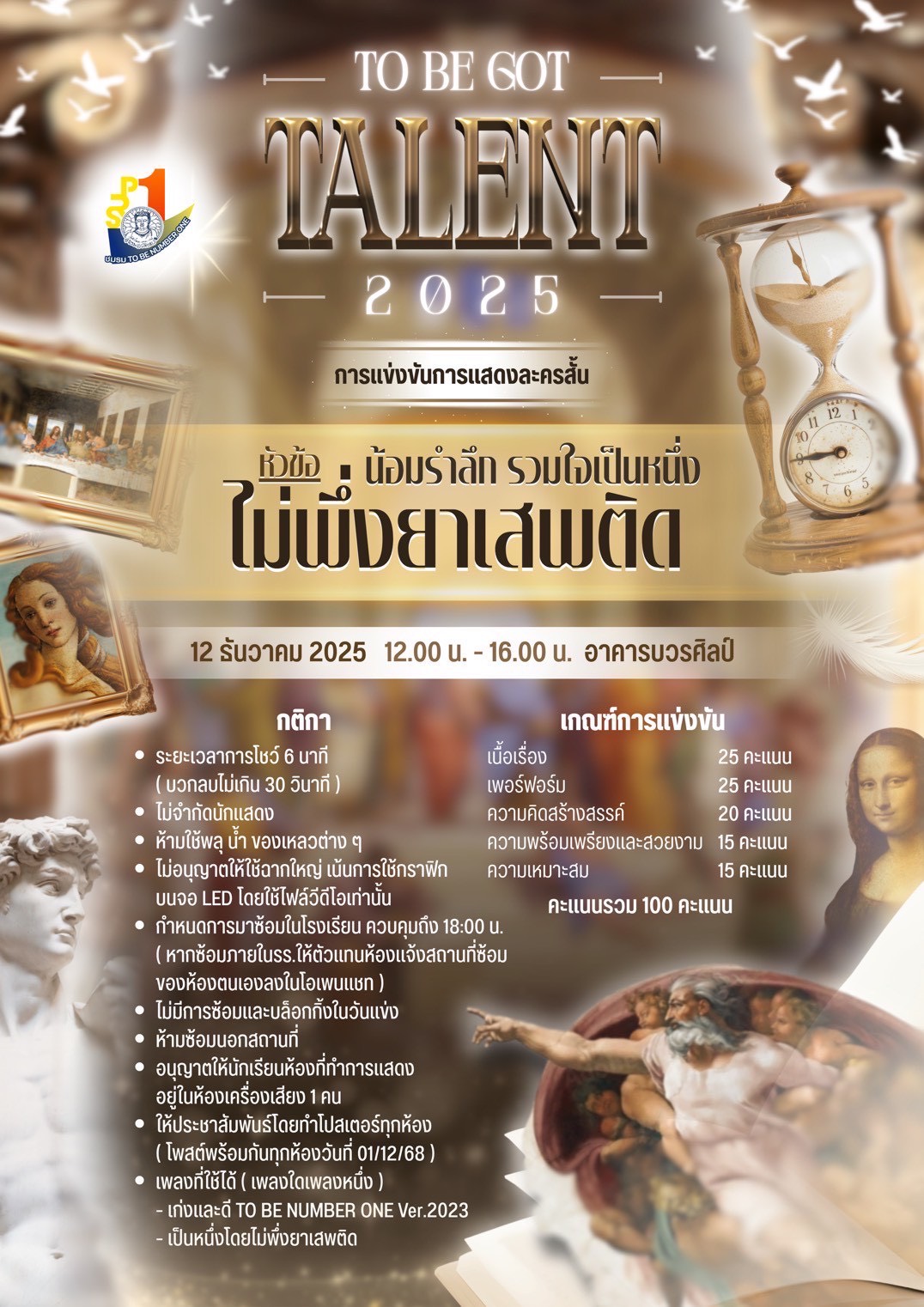ขอเชิญชวนคณะผู้บริหาร คุณครู และนักเรียน เข้าร่วมชมกิจกรรรมแข่งขัน TO BE GOT TALENT 2025