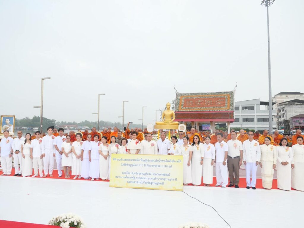 ร่วมพิธีทำบุญเมือง ฉลอง 110 ปี เมืองสุราษฎร์ธานี ตักบาตรพระ 1,110 รูป โดยมี นายจุมพฏ วรรณฉัตรสิริ ผู้ว่าราชการจังหวัดสุราษฎร์ธานี เป็นประธานในพิธี ณ ริมน้ำวัดกลาง(เก่า) จังหวัดสุราษฎร์ธานี