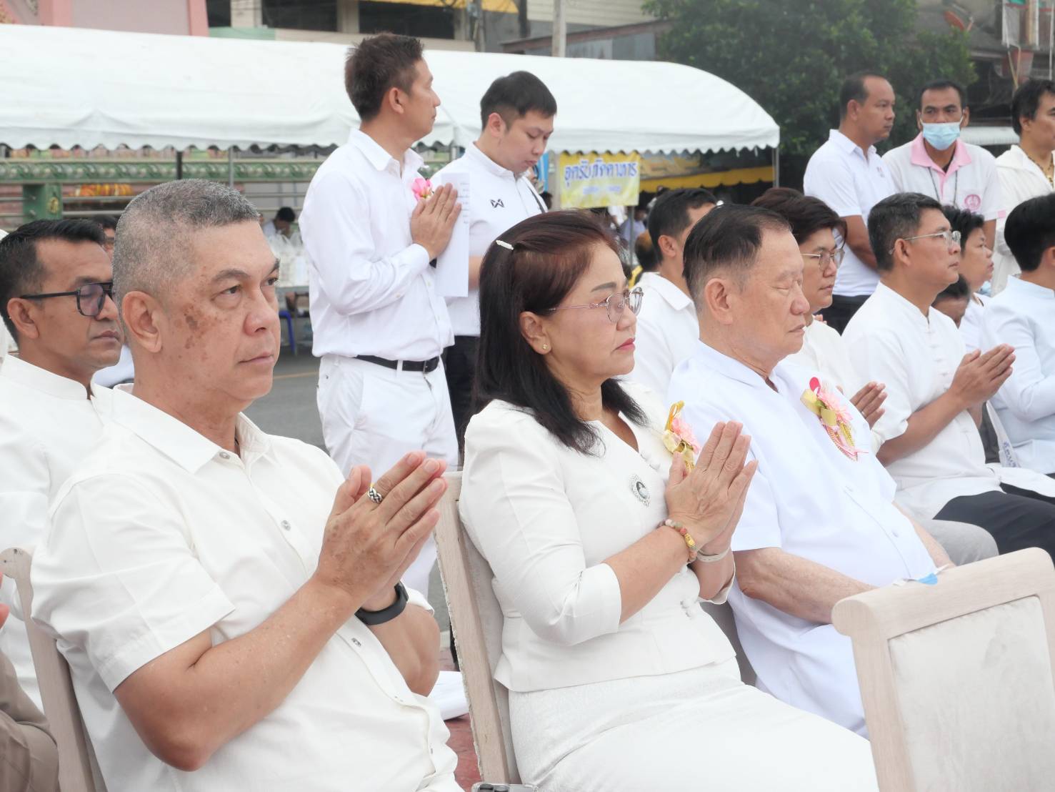 นายอภิชาติ ศรีทองสม รองผู้อํานวยการกลุ่มบริหารงานทั่วไป คณะครู ภาคีเครือข่าย และนักศึกษาวิชาทหารโรงเรียนสุราษฎร์พิทยา
