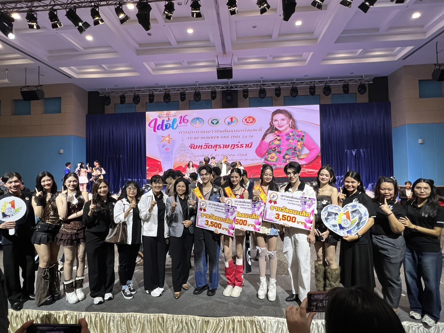 และนางกมลา รักษ์วงศ์ รองผู้อำนวยการกลุ่มบริหารงานงบประมาณเเละบุคคล พร้อมด้วยคณะครู นักเรียนชมรม TO BE NUMBER ONE โรงเรียนสุราษฎร์พิทยา ร่วมให้กำลังใจตัวเเทนนักเรียนในการประกวดเยาวชนต้นเเบบเก่งเเละดี TO BE NUMBER ONE IDOL รุ่นที่ 16 จังหวัดสุราษฎร์ธานี โดยมี นายบันดาล สถิรชวาล รองผู้ว่าราชการจังหวัดสุราษฎร์ธานี เป็นประธานในพิธีเปิดและมอบรางวัล