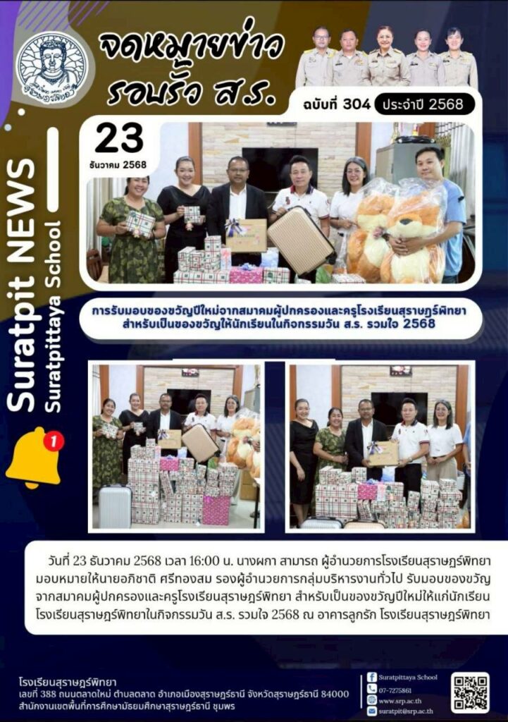 • รับมอบของขวัญจากสมาคมผู้ปกครองและครูโรงเรียนสุราษฎร์พิทยา