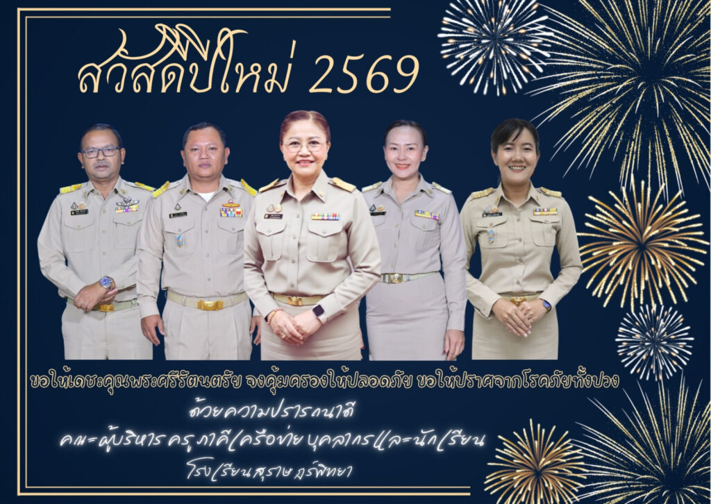 โรงเรียนสุราษฎร์พิทยา สวัสดีปีใหม่ 2569 / ข่าวประชาสัมพันธ์ / By สุธน ภักดี สวัสดีปีใหม่ 2569 ในนามของโรงเรียนสุราษฎร์พิทยา ขออวยพรให้ปีใหม่นี้เป็นปีแห่งความสำเร็จและความเจริญยิ่งขึ้นไป Post Views: 2