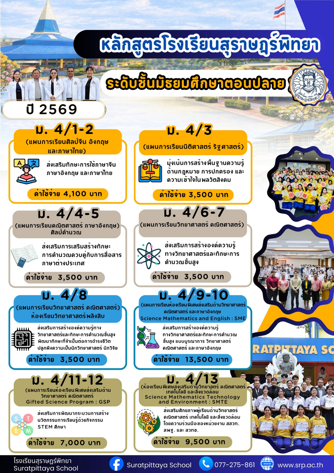 หลักสูตรโรงเรียนสุราษฎร์พิทยา ระดับชั้น ม.ต้น และ ม.ปลาย ปีการศึกษา 2569 / ข่าวประชาสัมพันธ์, โครงการห้องเรียนพิเศษ, โรงเรียนแข่งขันสูง / By สุธน ภักดี Post Views: 6