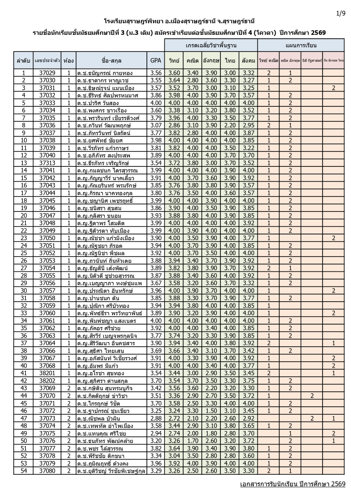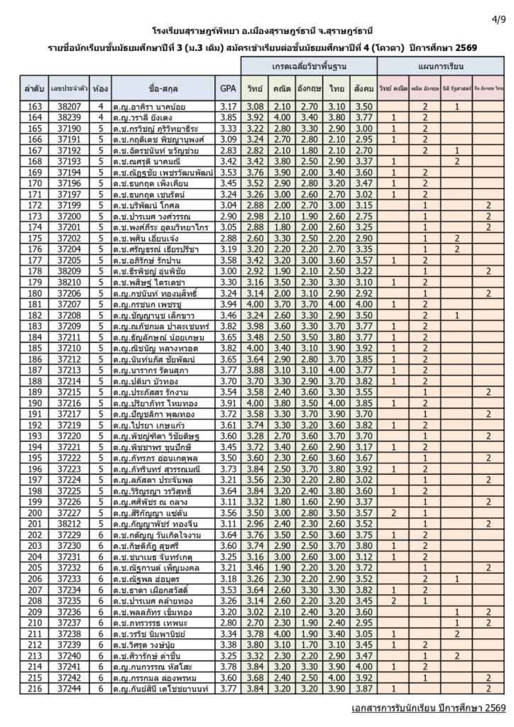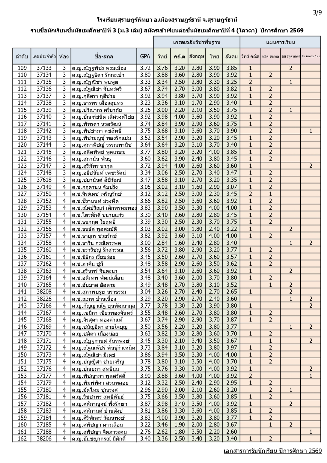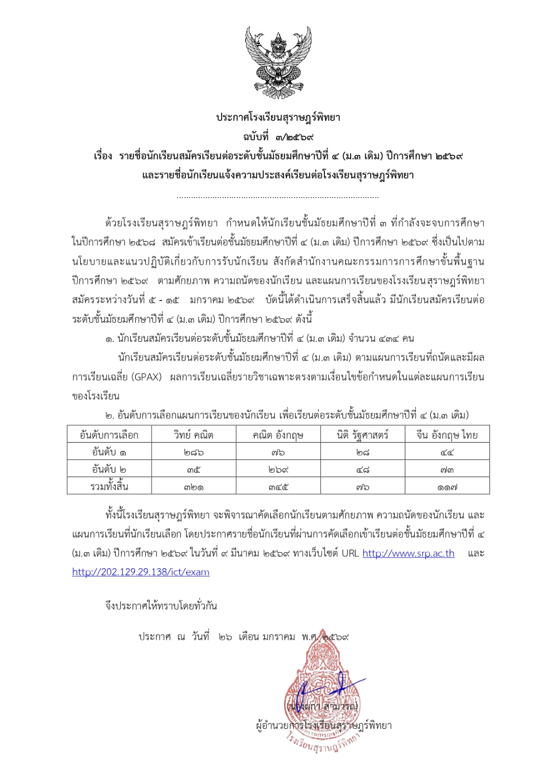 ประกาศรายชื่อนักเรียนสมัครเรียน ม.4 ประเภทนักเรียน ม.3 (โรงเรียนเดิม) ปีการศึกษา 2569 / ข่าวประกาศ, โรงเรียนแข่งขันสูง / By สุธน ภักดี ประกาศโรงเรียนสุราษฎร์พิทยา รายชื่อนักเรียนสมัครเรียนต่อระดับชั้นมัธยมศึกษาปีที่ 4 (ม.3 เดิม) ปีการศึกษา 2569 และรายชื่อนักเรียนแจ้งความประสงค์เรียนต่อโรงเรียนสุราษฎร์พิทยา Post Views: 15