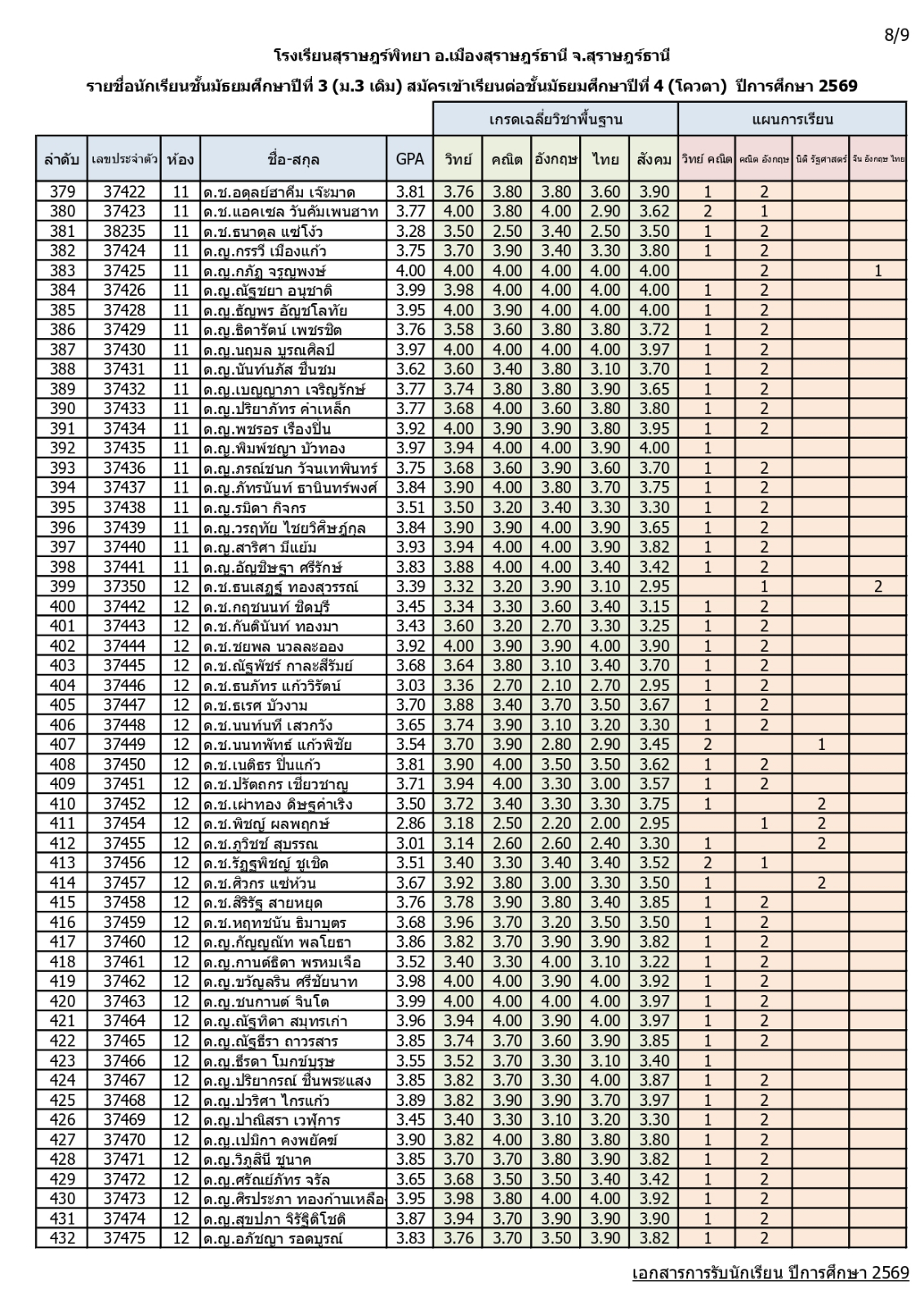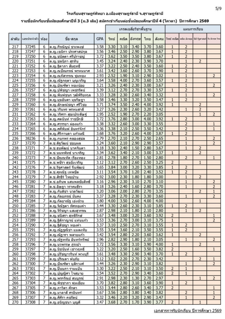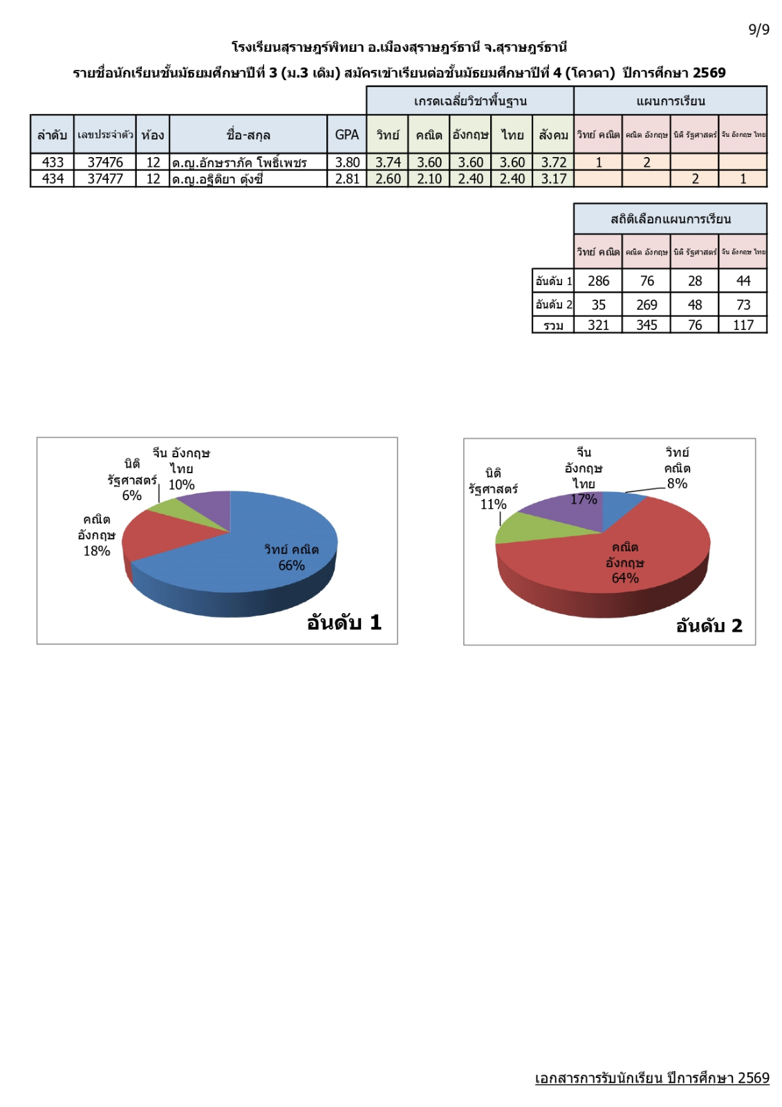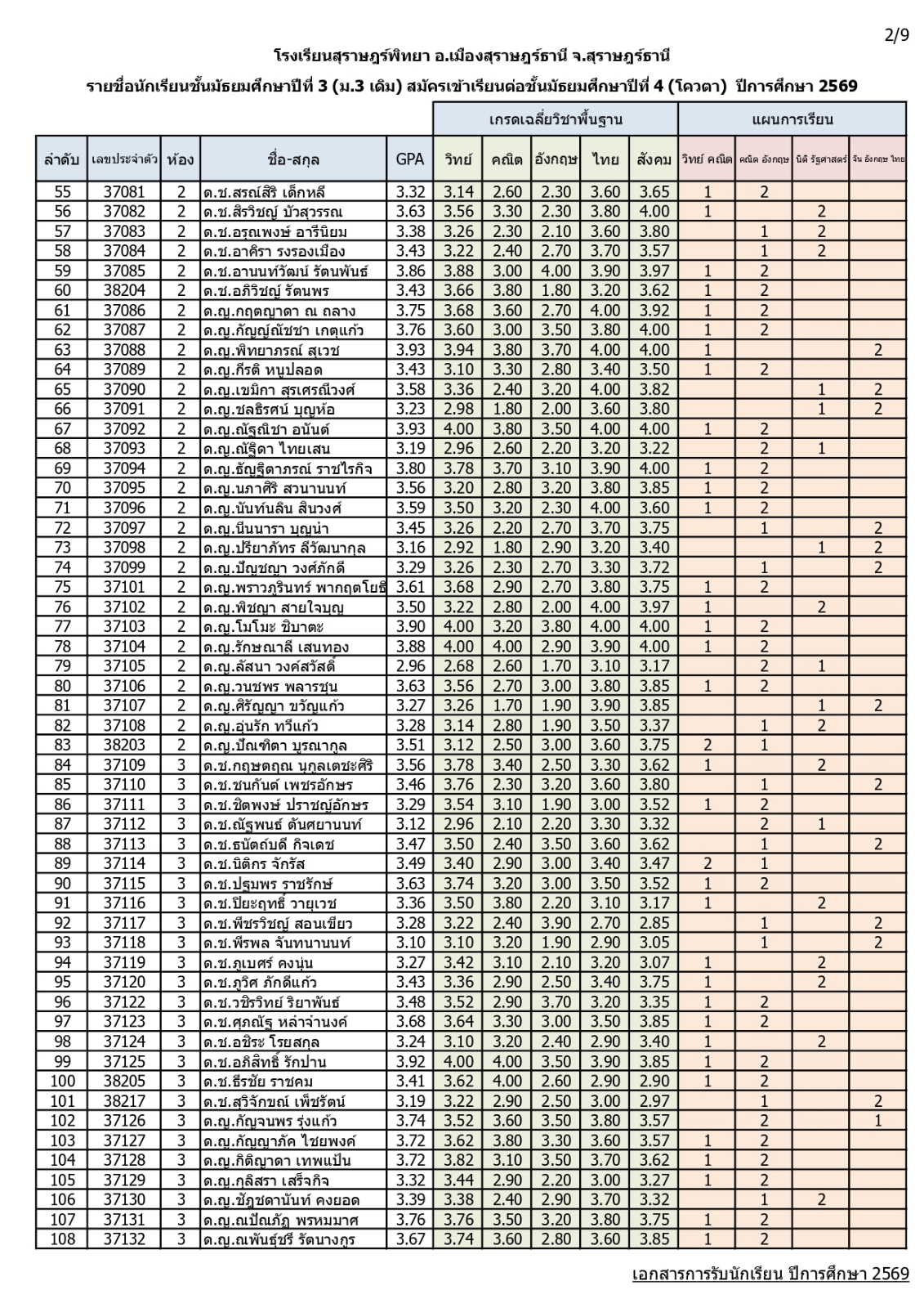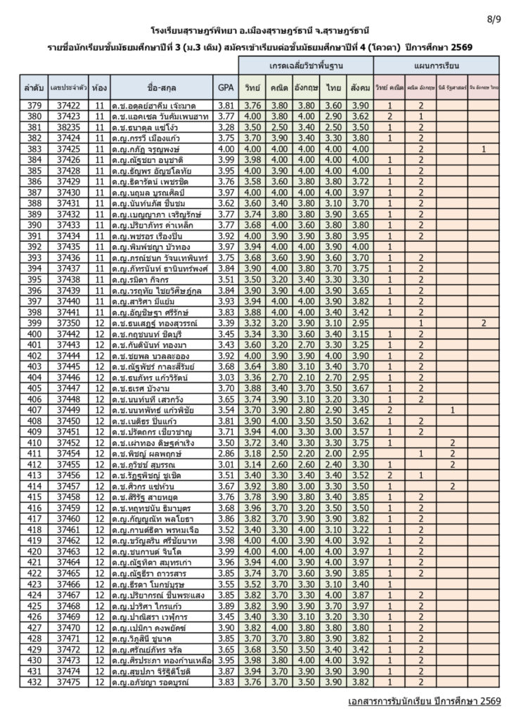 ประกาศรายชื่อนักเรียนสมัครเรียน ม.4 ประเภทนักเรียน ม.3 (โรงเรียนเดิม) ปีการศึกษา 2569 / ข่าวประกาศ, โรงเรียนแข่งขันสูง / By สุธน ภักดี ประกาศโรงเรียนสุราษฎร์พิทยา รายชื่อนักเรียนสมัครเรียนต่อระดับชั้นมัธยมศึกษาปีที่ 4 (ม.3 เดิม) ปีการศึกษา 2569 และรายชื่อนักเรียนแจ้งความประสงค์เรียนต่อโรงเรียนสุราษฎร์พิทยา Post Views: 15