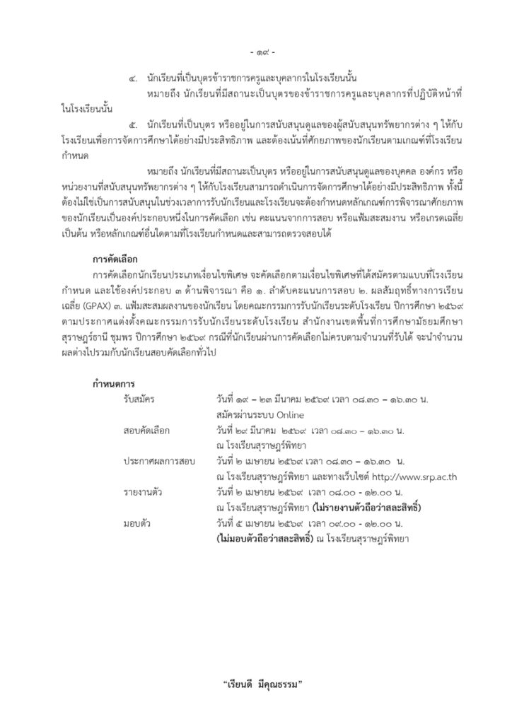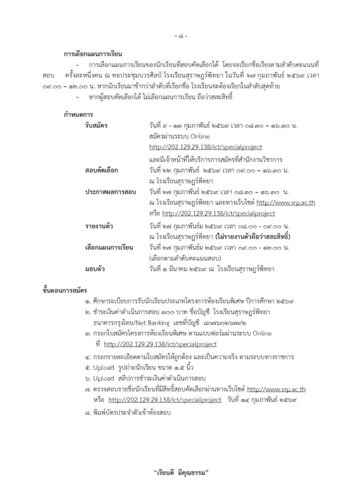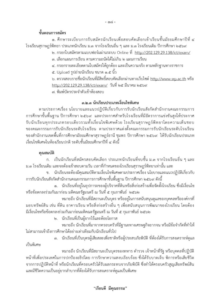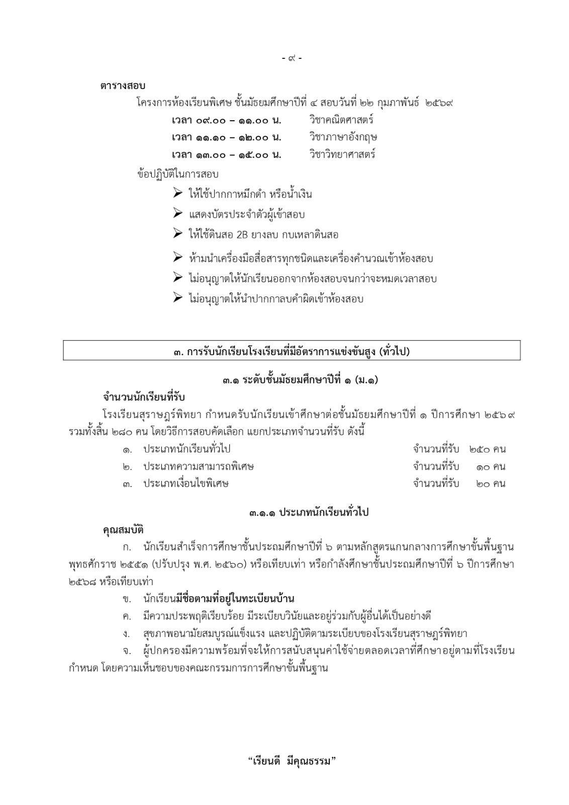 ประกาศการรับนักเรียนเข้าเรียนต่อ โรงเรียนสุราษฎร์พิทยา ปีการศึกษา 2569 ม.1 และ ม.4 / ข่าวประกาศ, โครงการห้องเรียนพิเศษ, โรงเรียนแข่งขันสูง / By สุธน ภักดี โครงการห้องเรียนพิเศษขั้นตอนการสมัคร คลิกที่นี่คำถามที่พบบ่อย (FAQ) คลิกที่นี่สมัครสอบ คลิกที่นี่รอบทั่วไปขั้นตอนการสมัคร คลิกที่นี่คำถามที่พบบ่อย (FAQ) คลิกที่นี่สมัครสอบ คลิกที่นี่ Post Views: 10