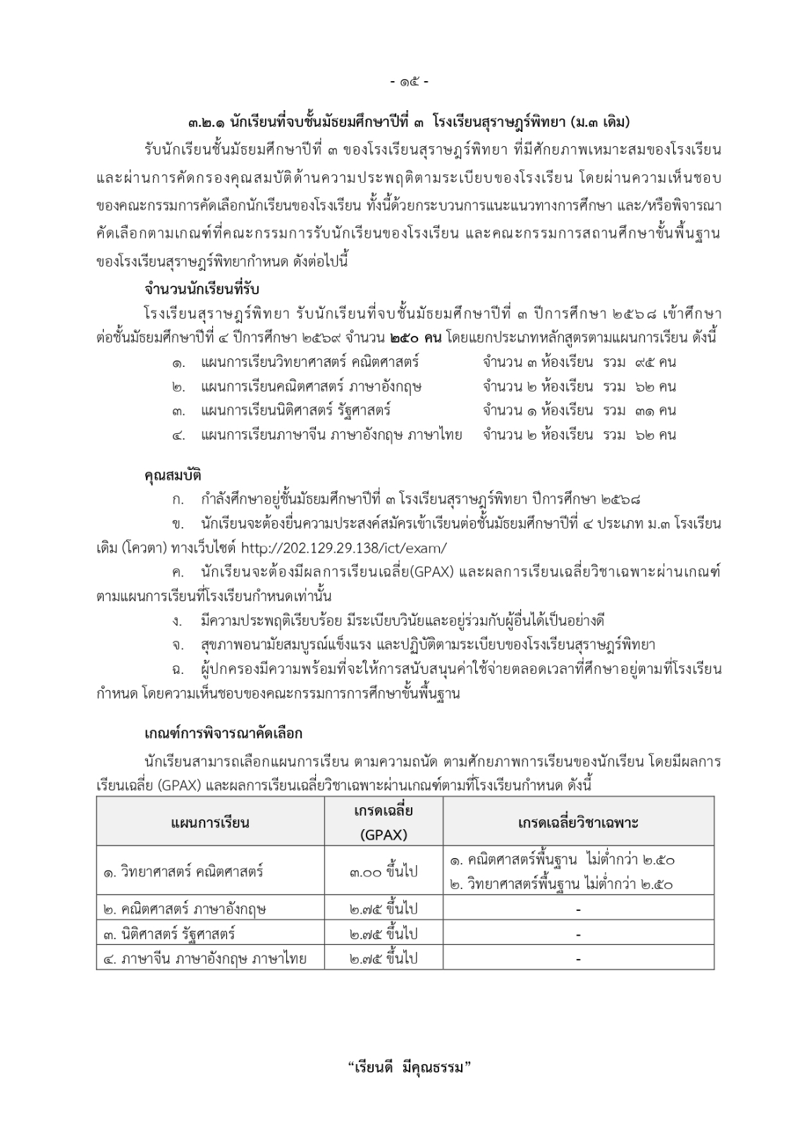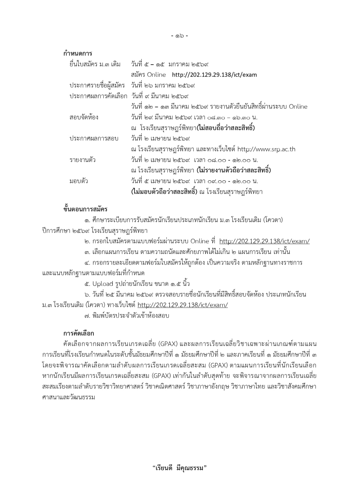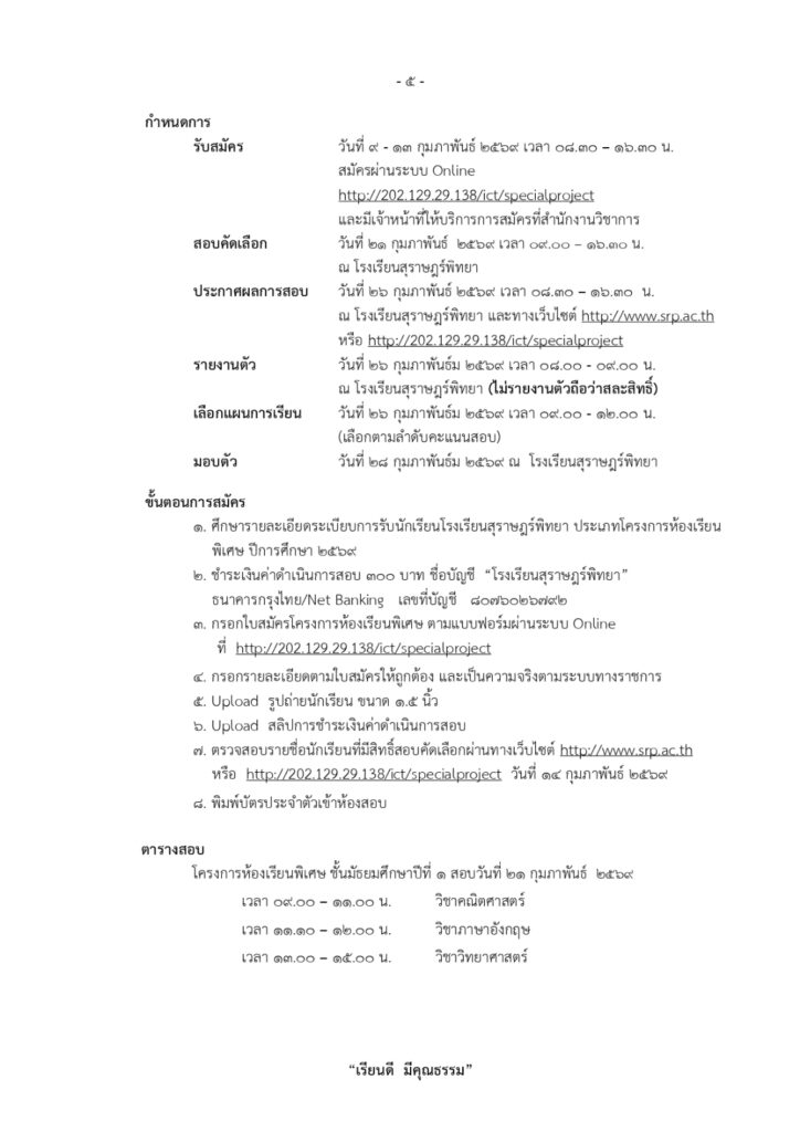 ประกาศการรับนักเรียนเข้าเรียนต่อ โรงเรียนสุราษฎร์พิทยา ปีการศึกษา 2569 ม.1 และ ม.4 / ข่าวประกาศ, โครงการห้องเรียนพิเศษ, โรงเรียนแข่งขันสูง / By สุธน ภักดี โครงการห้องเรียนพิเศษขั้นตอนการสมัคร คลิกที่นี่คำถามที่พบบ่อย (FAQ) คลิกที่นี่สมัครสอบ คลิกที่นี่รอบทั่วไปขั้นตอนการสมัคร คลิกที่นี่คำถามที่พบบ่อย (FAQ) คลิกที่นี่สมัครสอบ คลิกที่นี่ Post Views: 10