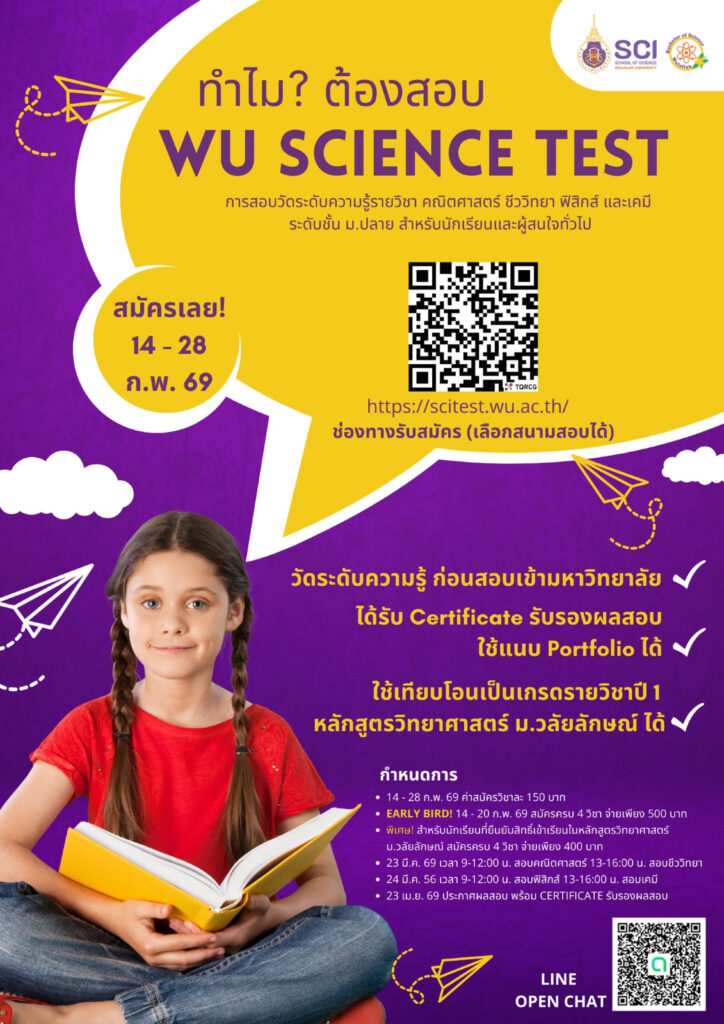เปิดรับสมัครสอบ WU Science Test 14 – 28 กุมภาพันธ์ 2569 Valentine นี้ ชวนกันมาสมัครสอบ WU Science Test