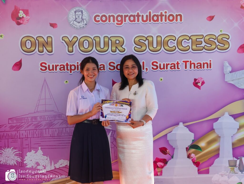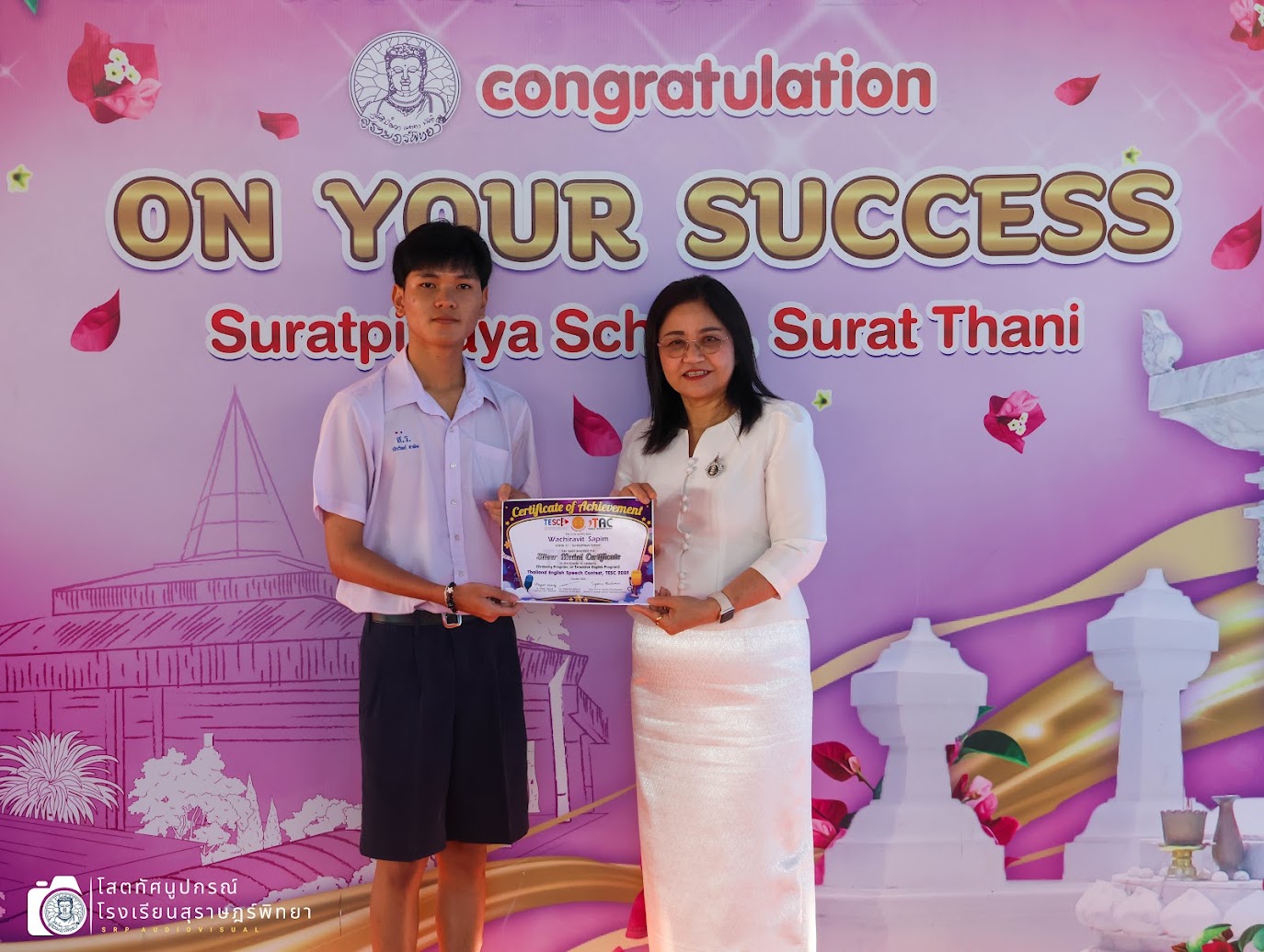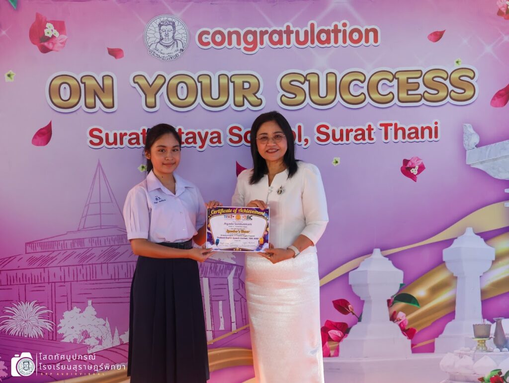 รางวัลเกียรติบัตรเชิดชูเกียรติ The Speaker’s Honor เกียรติบัตรเหรียญทอง / ผลงานดีเด่น / By สุธน ภักดี โรงเรียนสุราษฎร์พิทยา ขอแสดงความยินดีกับนักเรียนที่ได้รับรางวัลในการแข่งขันการพูดสุนทรพจน์ภาษาอังกฤษระดับประเทศ ครั้งที่ 3 Thailand English Speech Contest (TESC2025) จัดโดย บริษัท อคาเดมิค คอนเทสต์ (ประเทศไทย) จำกัด รางวัลเกียรติบัตรเชิดชูเกียรติ The Speaker’s Honor เกียรติบัตรเหรียญทอง Post Views: 2