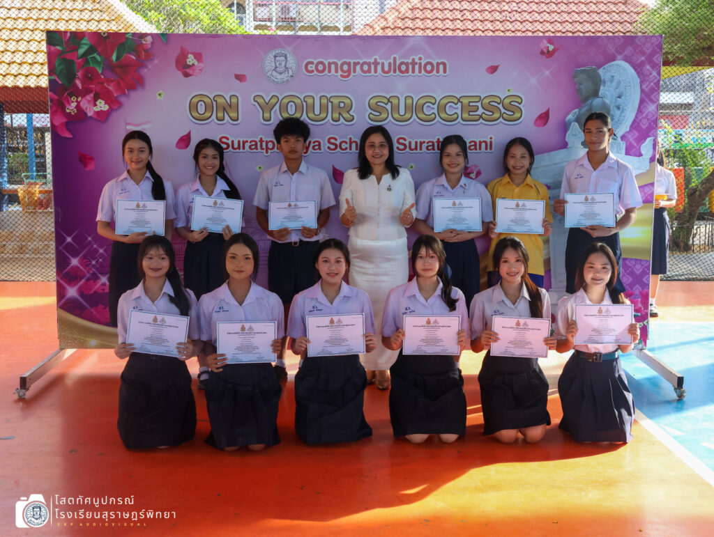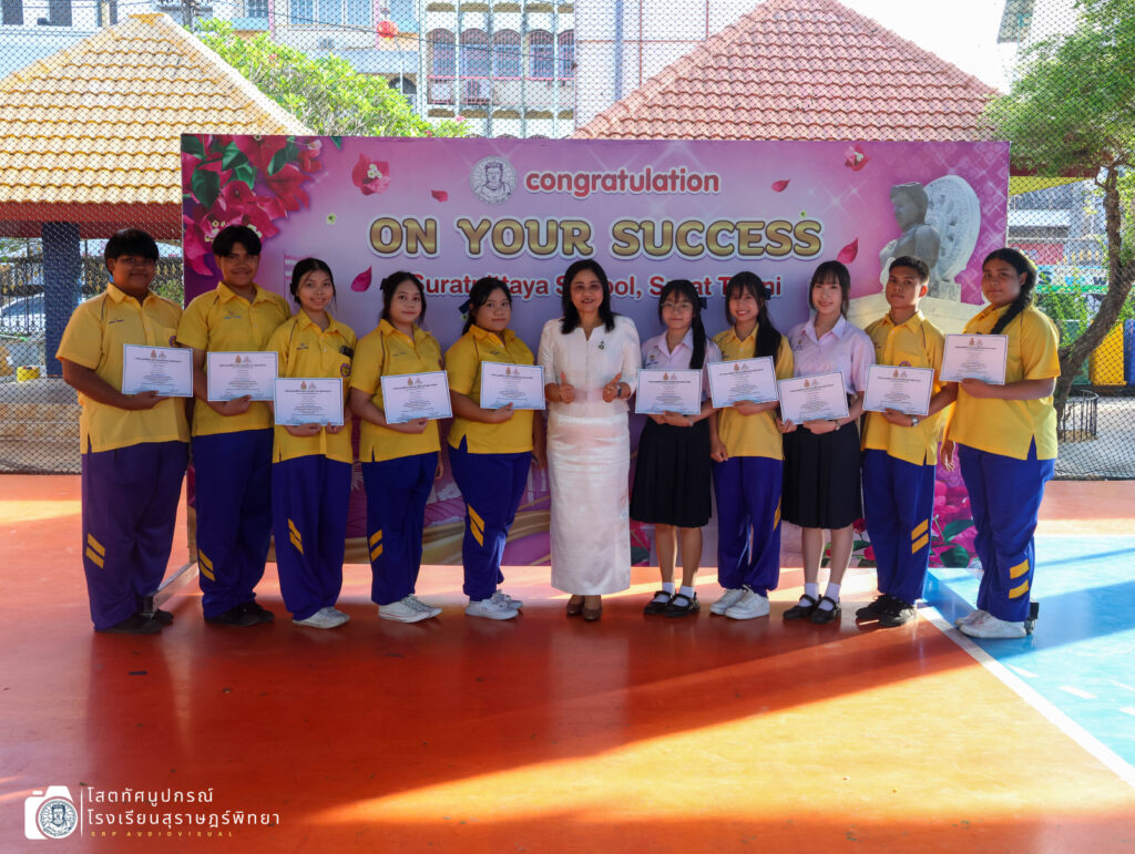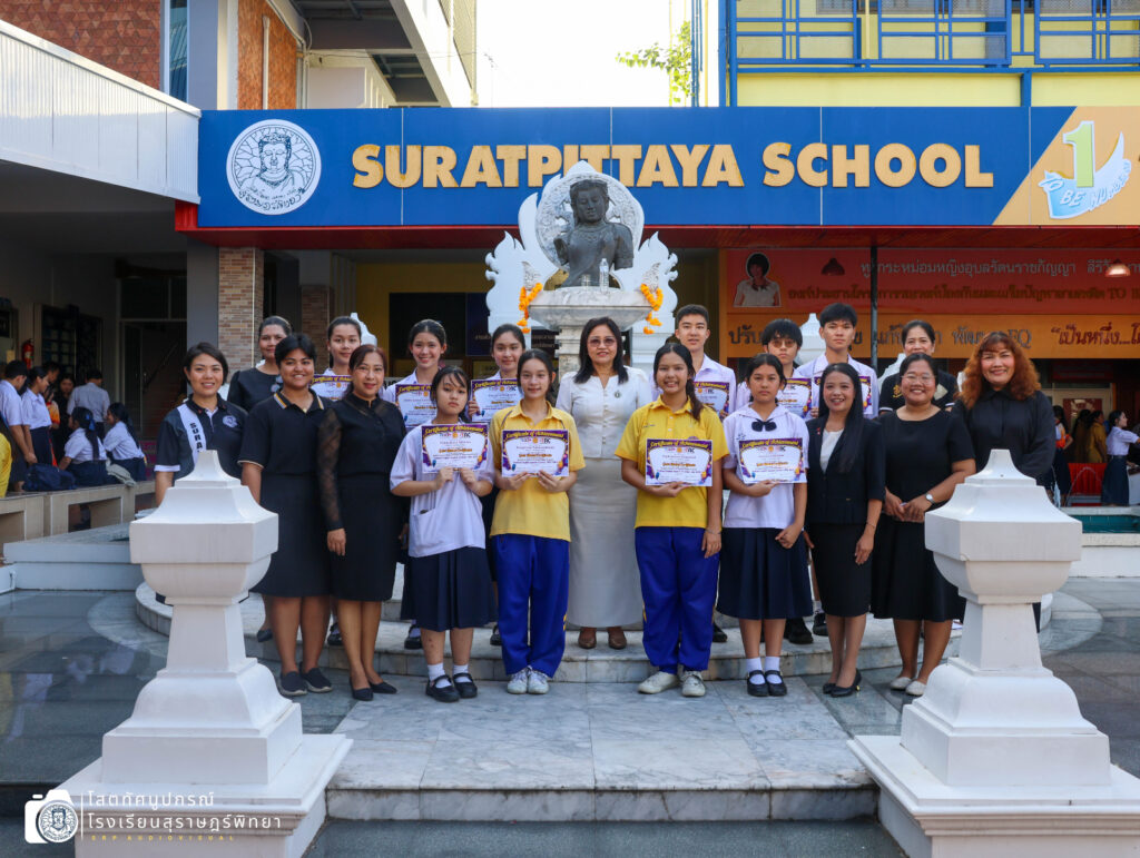 วันที่ 13 กุมภาพันธ์ 2569 เวลา 08.00 น. นางผกา สามารถ ผู้อำนวยการโรงเรียนสุราษฎร์พิทยา มอบเกียรติบัตรแก่ตัวแทนนักเรียนกลุ่มสาระการเรียนรู้คณิตศาสตร์ กลุ่มสาระการเรียนรู้ศิลปะ (นาฏศิลป์) กลุ่มสาระการเรียนรู้ภาษาต่างประเทศ กิจกรรมพัฒนาผู้เรียน