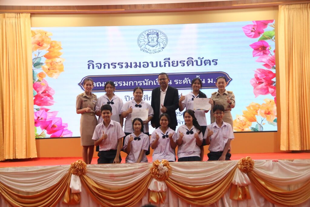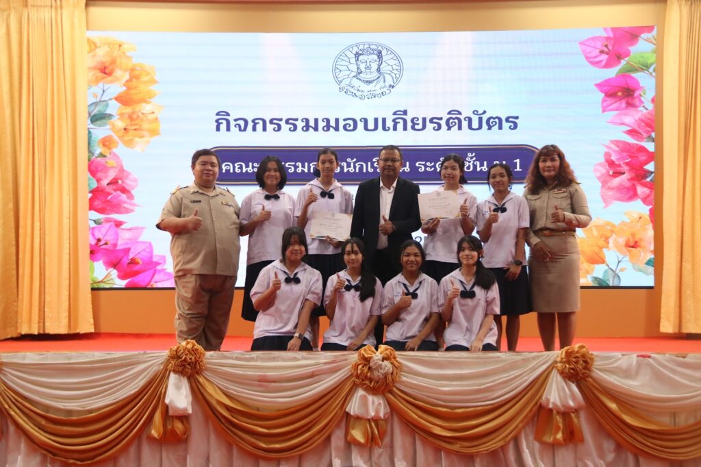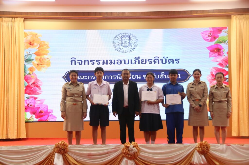 นายอภิชาติ ศรีทองสม รองผู้อำนวยการกลุ่มบริหารงานทั่วไป ร่วมประชุมและมอบเกียรติบัตรแก่คณะกรรมการนักเรียน