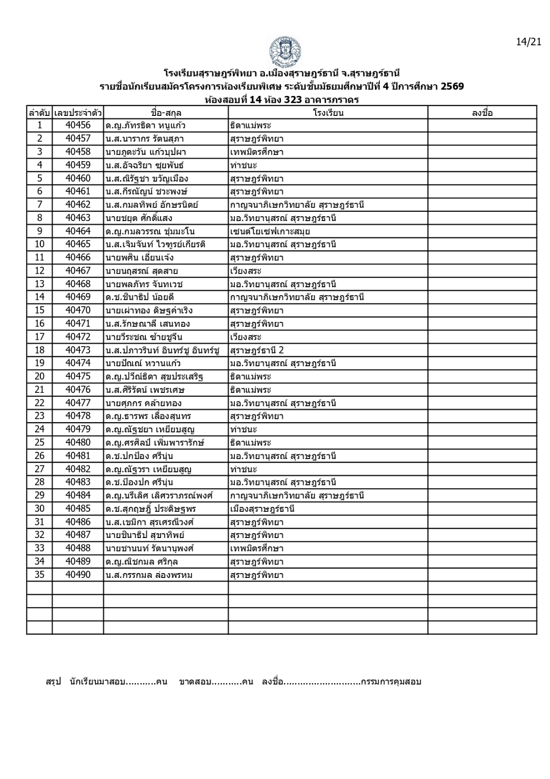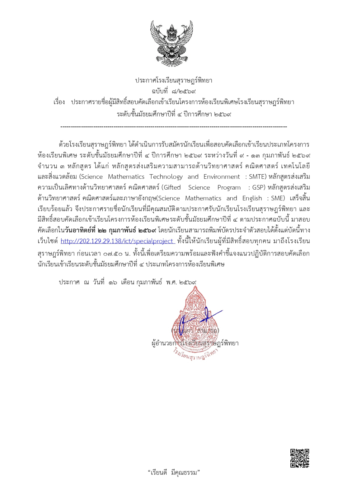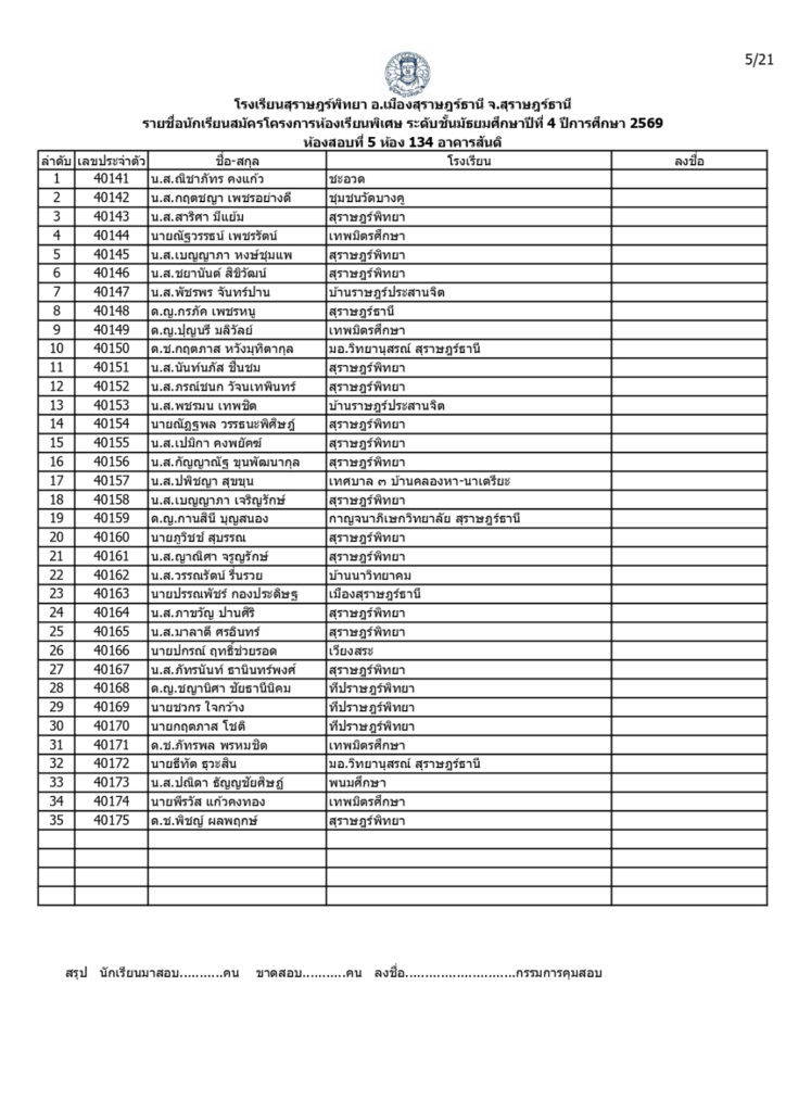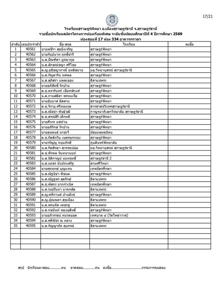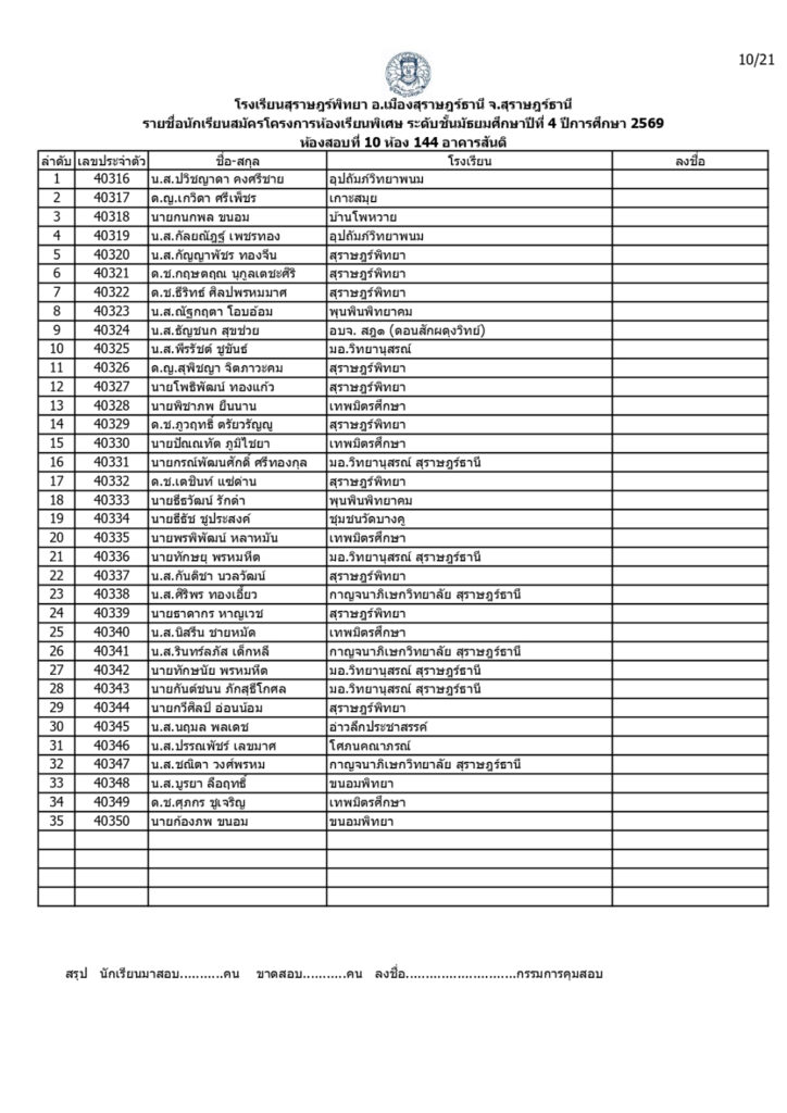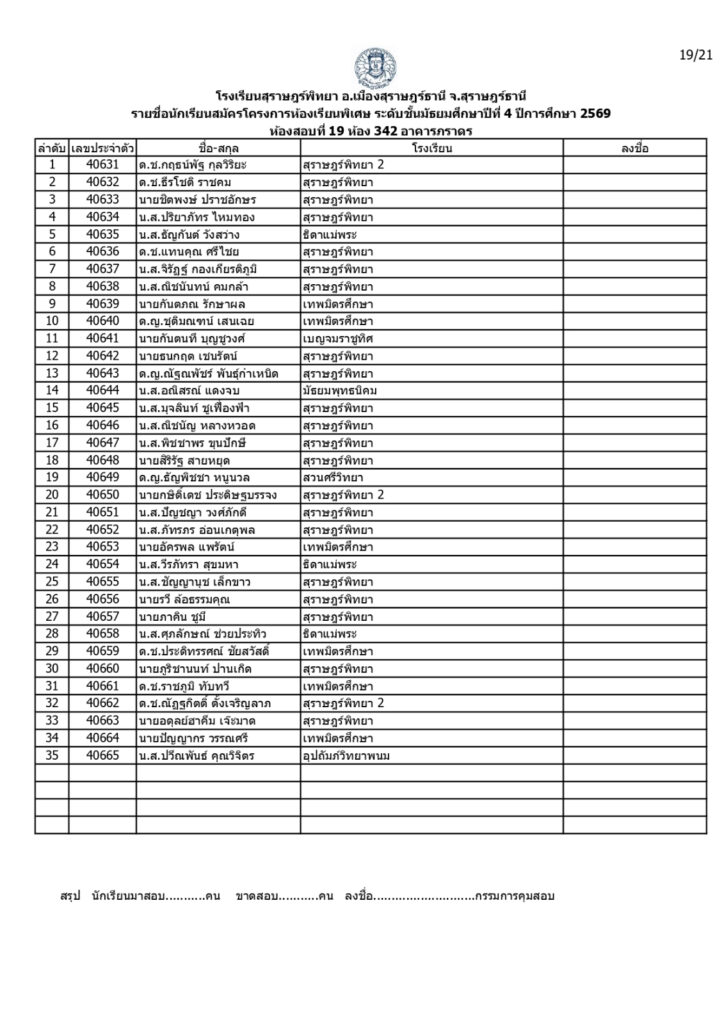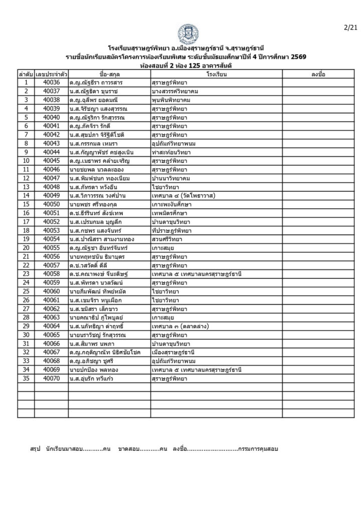 ประกาศรายชื่อผู้มีสิทธิ์สอบคัดเลือกเข้าเรียนโครงการห้องเรียนพิเศษโรงเรียนสุราษฎร์พิทยาระดับชั้นมัธยมศึกษาปีที่ 4 ปีการศึกษา 2569 / ข่าวประกาศ, โครงการห้องเรียนพิเศษ / By สุธน ภักดี Post Views: 12