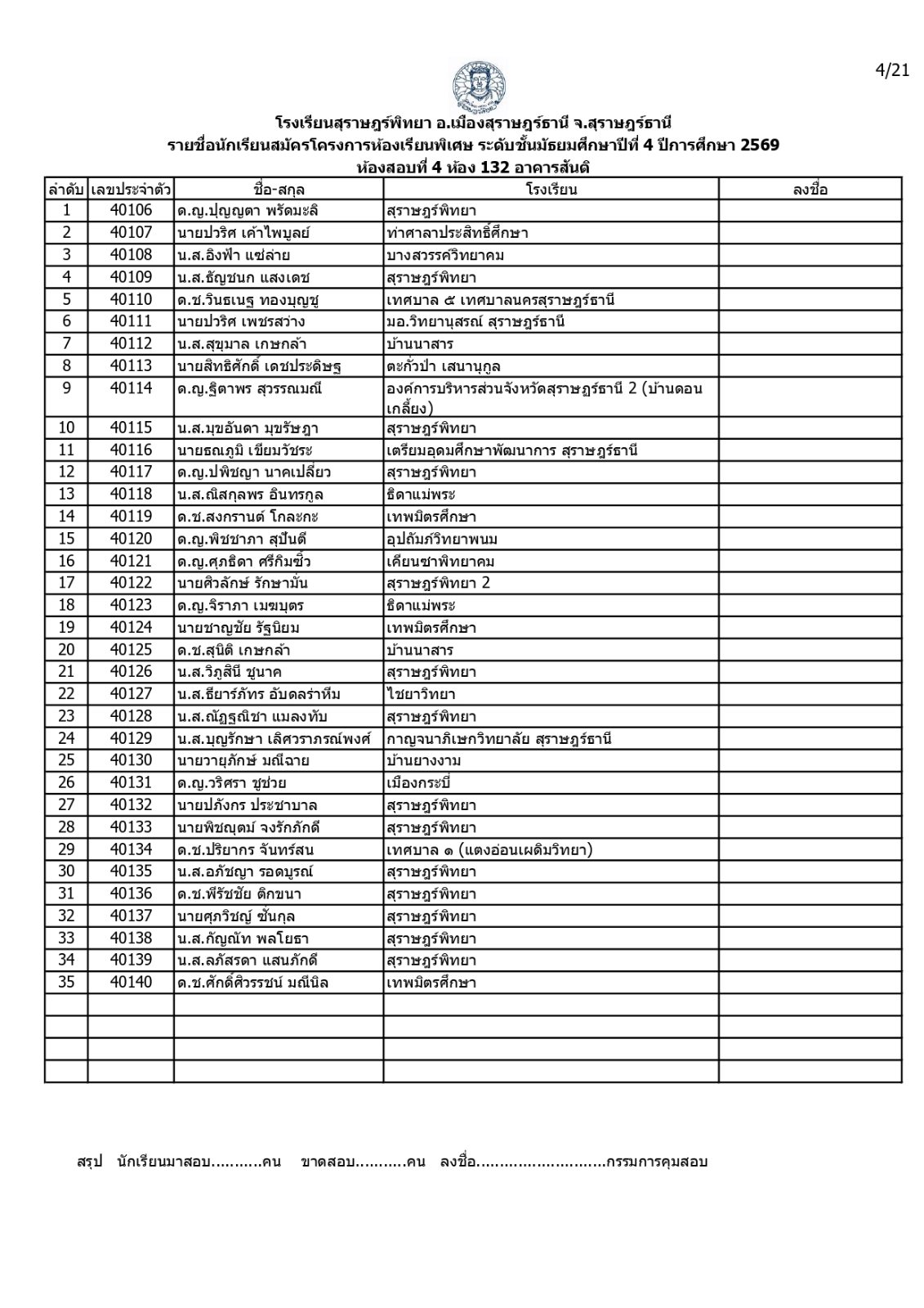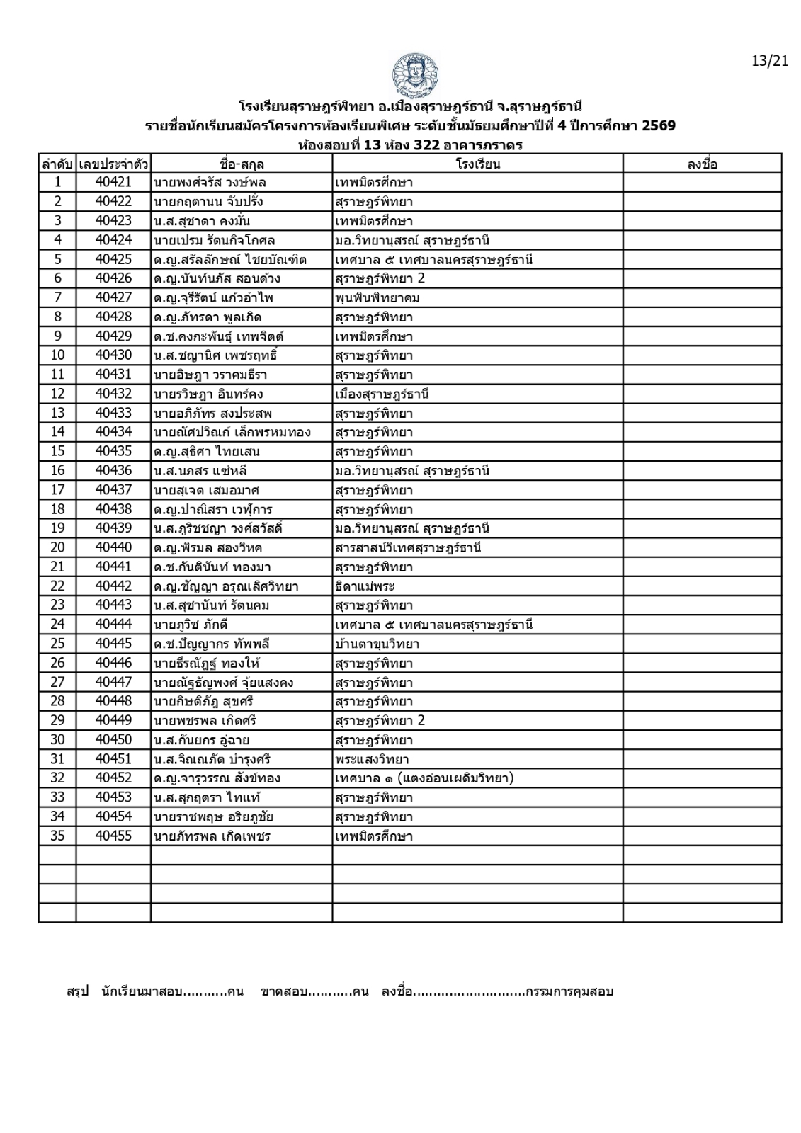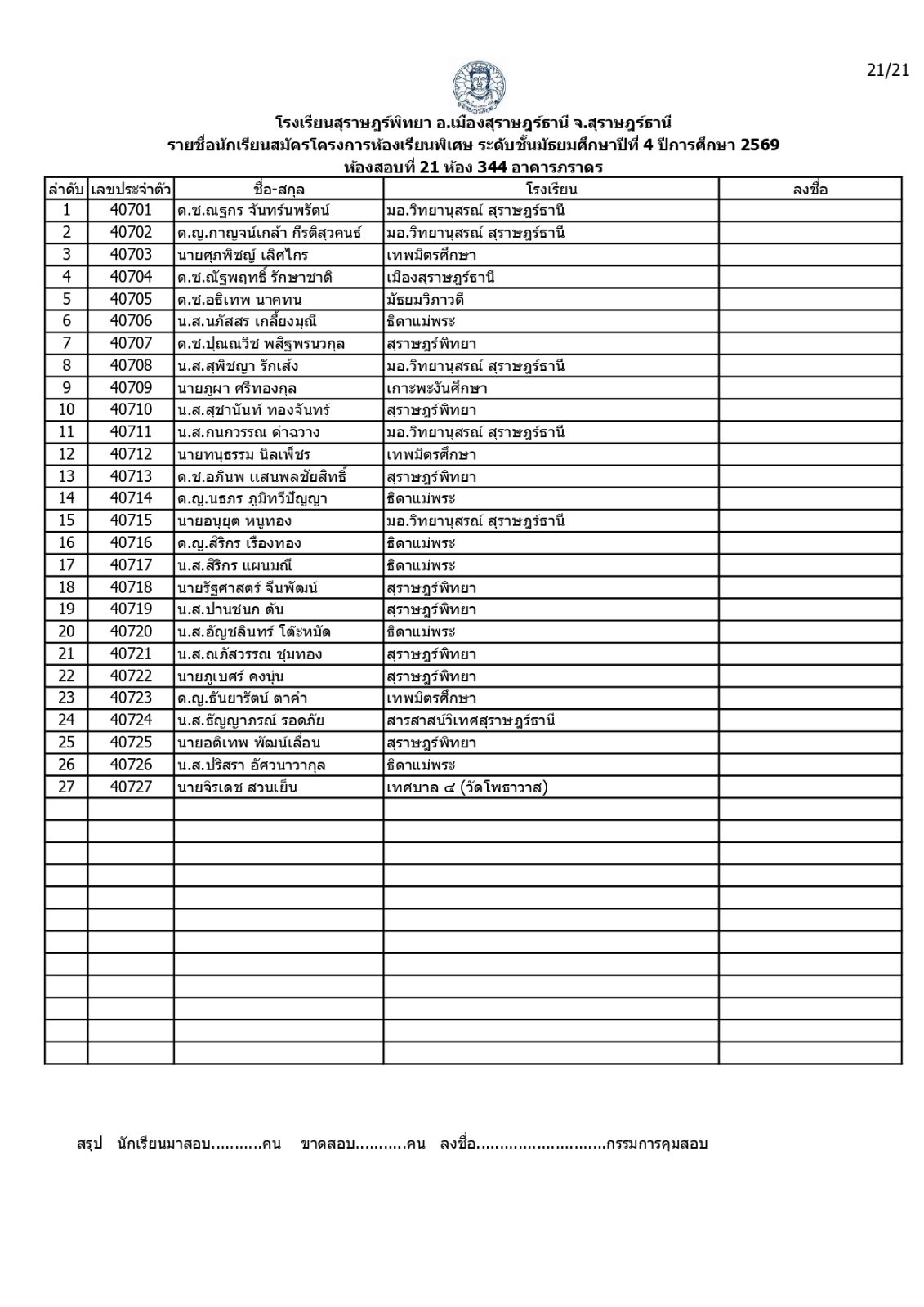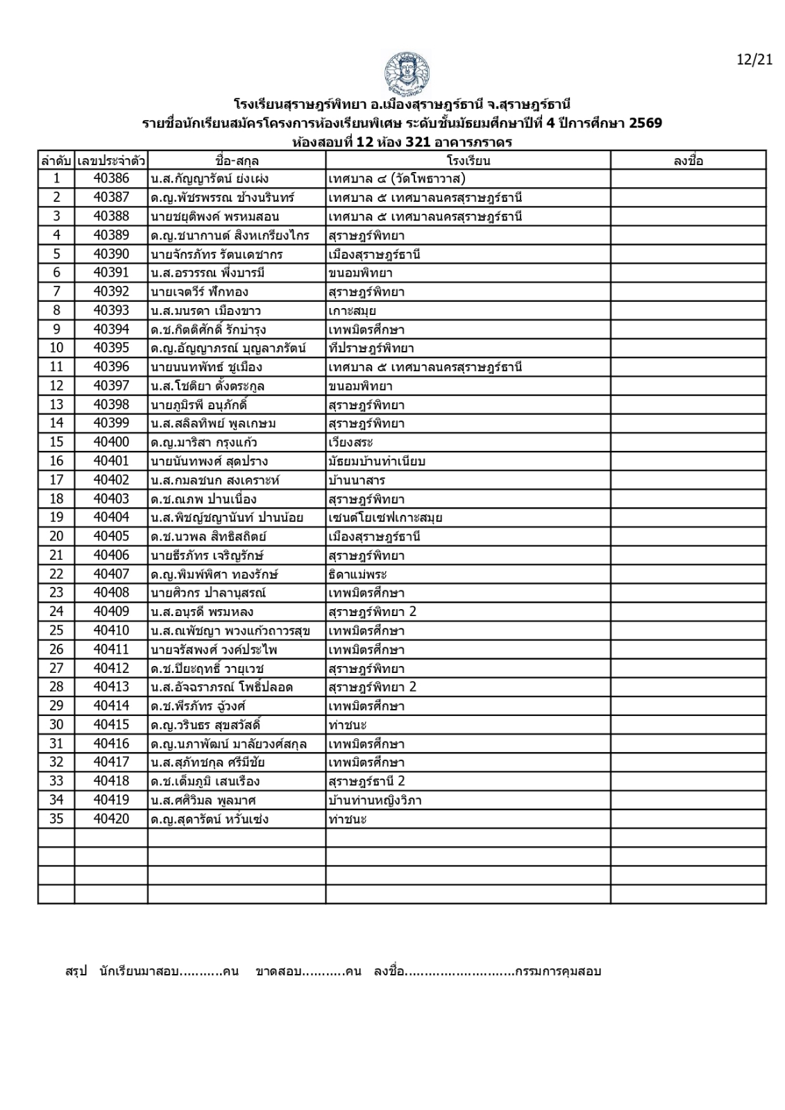 ประกาศรายชื่อผู้มีสิทธิ์สอบคัดเลือกเข้าเรียนโครงการห้องเรียนพิเศษโรงเรียนสุราษฎร์พิทยาระดับชั้นมัธยมศึกษาปีที่ 4 ปีการศึกษา 2569 / ข่าวประกาศ, โครงการห้องเรียนพิเศษ / By สุธน ภักดี Post Views: 12