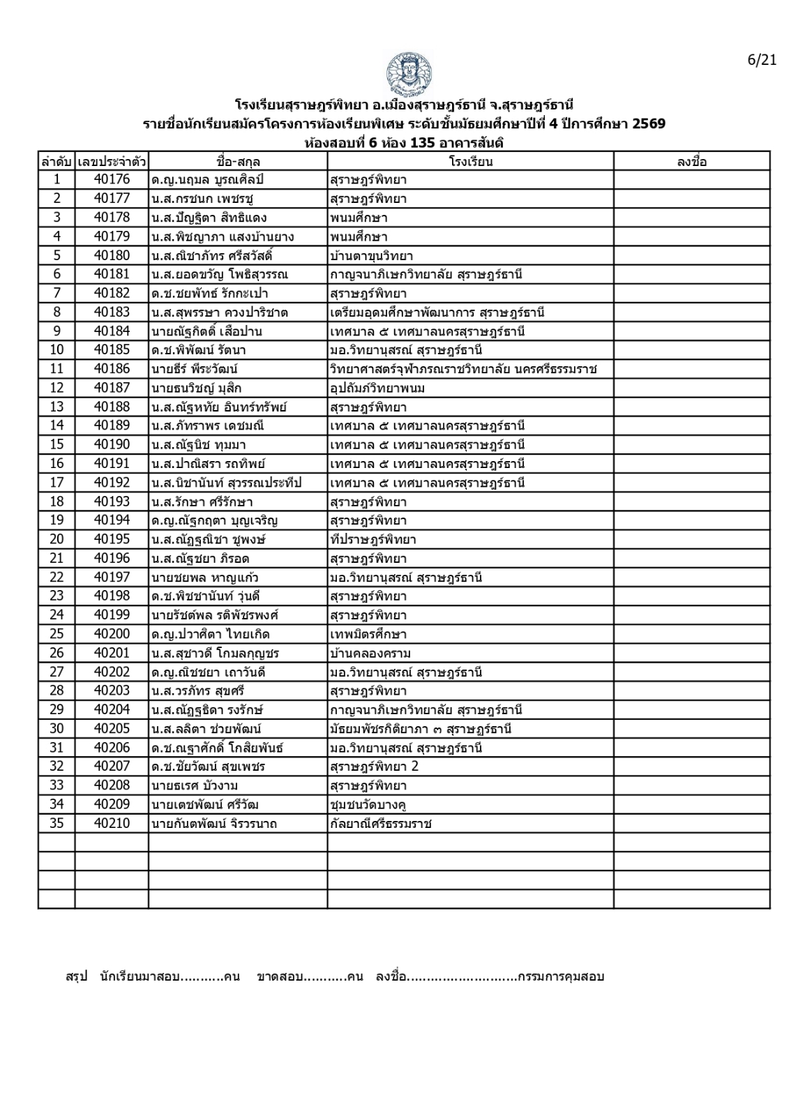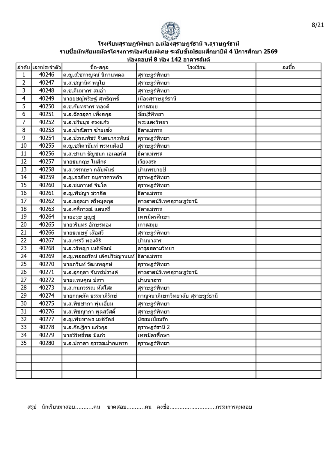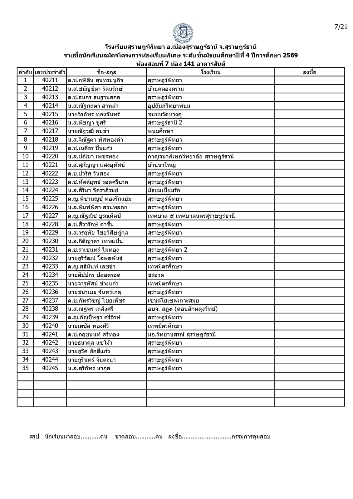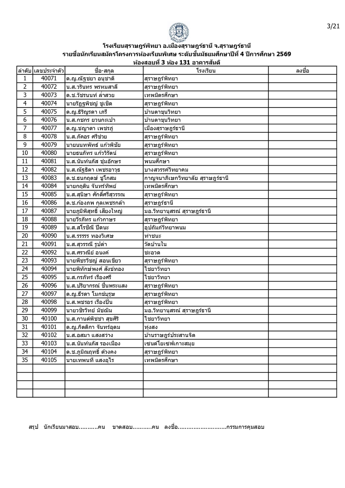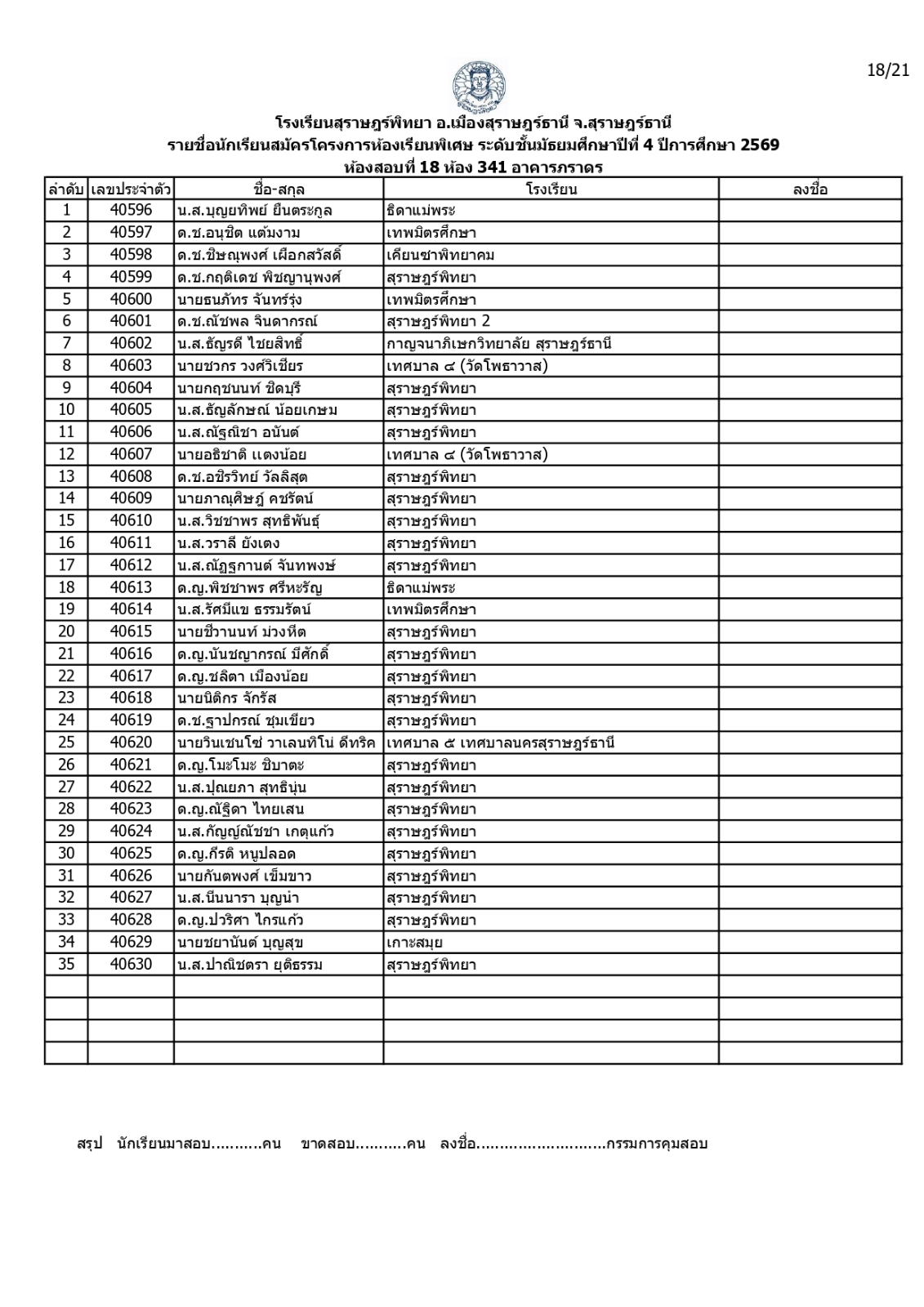 ประกาศรายชื่อผู้มีสิทธิ์สอบคัดเลือกเข้าเรียนโครงการห้องเรียนพิเศษโรงเรียนสุราษฎร์พิทยาระดับชั้นมัธยมศึกษาปีที่ 4 ปีการศึกษา 2569 / ข่าวประกาศ, โครงการห้องเรียนพิเศษ / By สุธน ภักดี Post Views: 12