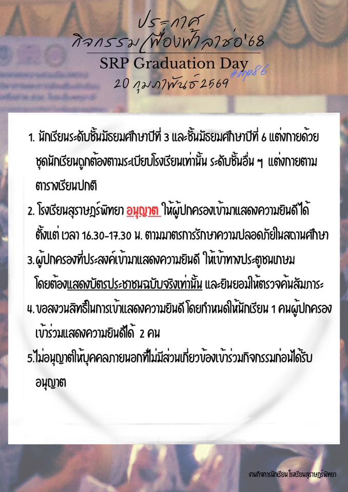 แนวปฏิบัติกิจกรรมเฟื่องฟ้าลาช่อ ปีการศึกษา 2568 20 กุมภาพันธ์ 2569 / ข่าวประชาสัมพันธ์ / By สุธน ภักดี แนวปฏิบัติกิจกรรมเฟื่องฟ้าลาช่อ ปีการศึกษา 2568 (ปัจฉิมนิเทศนักเรียนระดับชั้นมัธยมศึกษาปีที่ 3 และนักเรียนระดับชั้นมัธยมศึกษาปีที่ 6) วันศุกร์ที่ 20 กุมภาพันธ์ 2569 Post Views: 23