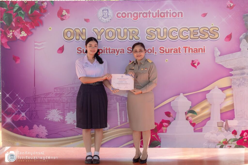 วันที่ 18 กุมภาพันธ์ 2569 เวลา 08.00 น. นางผกา สามารถ ผู้อำนวยการโรงเรียนสุราษฎร์พิทยา มอบเกียรติบัตร