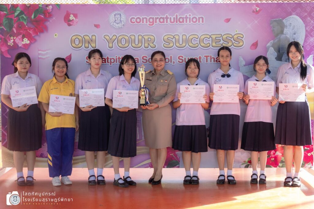 และโล่รางวัล แก่ตัวแทนนักเรียนกลุ่มสาระการเรียนรู้ภาษาต่างประเทศ (ภาษาจีน) และกิจกรรมชุมนุมประชาสัมพันธ์