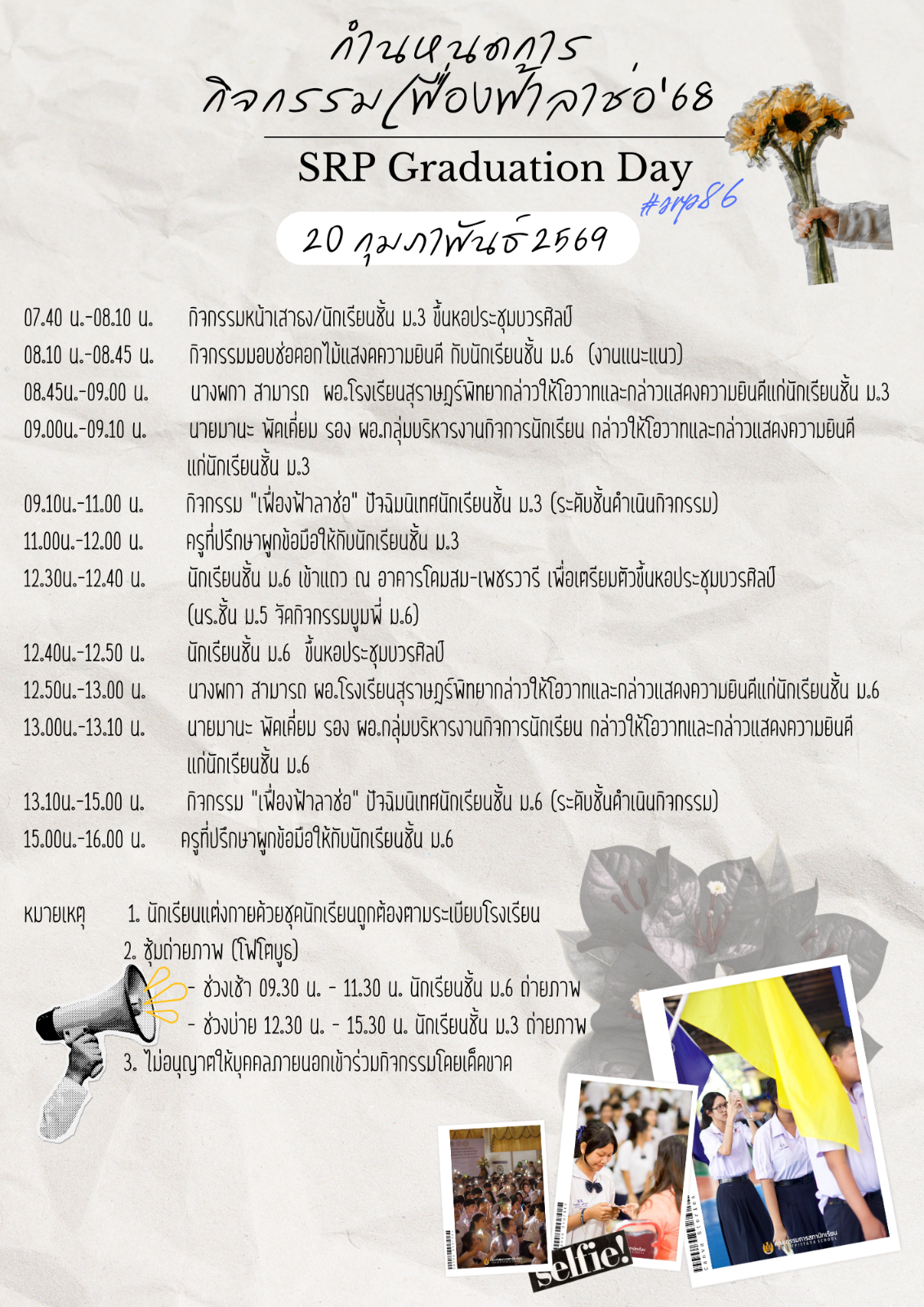 กำหนดการกิจกรรม เฟื่องฟ้าลาช่อ’68 ปีการศึกษา 2568