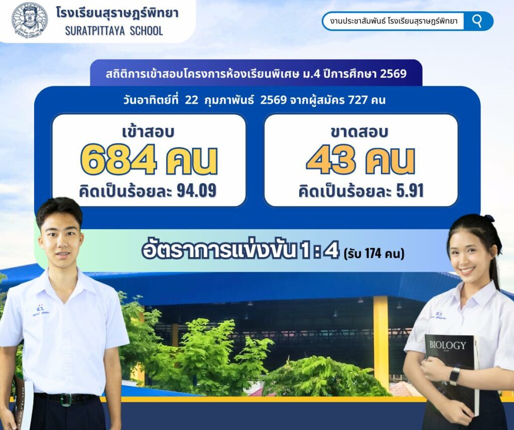 สถิติการเข้าสอบโครงการห้องเรียนพิเศษ ม.4 ปีการศึกษา 2569 / ข่าวประชาสัมพันธ์ / By สุธน ภักดี Post Views: 30