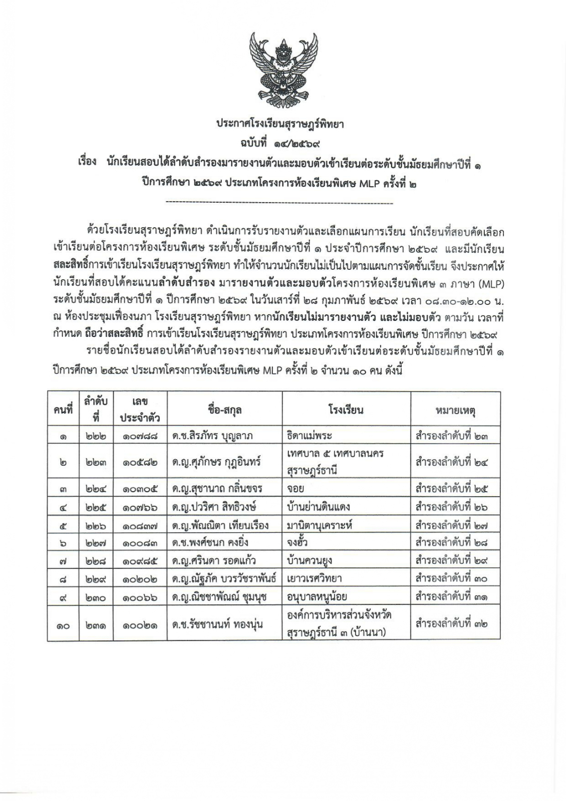 เรียกนักเรียนได้ลำดับสำรองรายงานตัวและมอบตัวเข้าเรียนต่อ ม.1 ปีการศึกษา 2569 MLP ครั้งที่ 2 / ข่าวประกาศ, โครงการห้องเรียนพิเศษ / By สุธน ภักดี ประกาศโรงเรียนสุราษฎร์พิทยา เรียกนักเรียนได้ลำดับสำรองรายงานตัวและมอบตัวเข้าเรียนต่อระดับชั้นมัธยมศึกษาปีที่ 1 ปีการศึกษา 2569 ประเภทโครงการห้องเรียนพิเศษ MLP ครั้งที่ 2 Post Views: 23