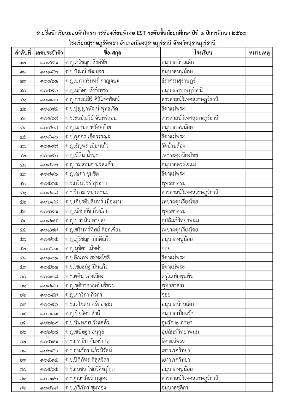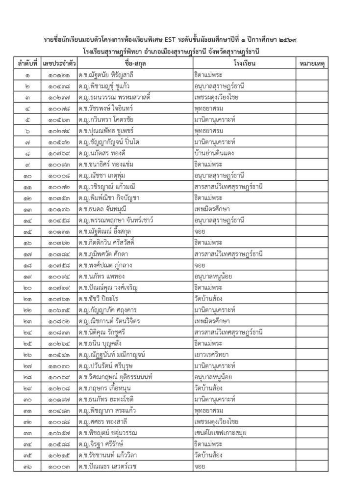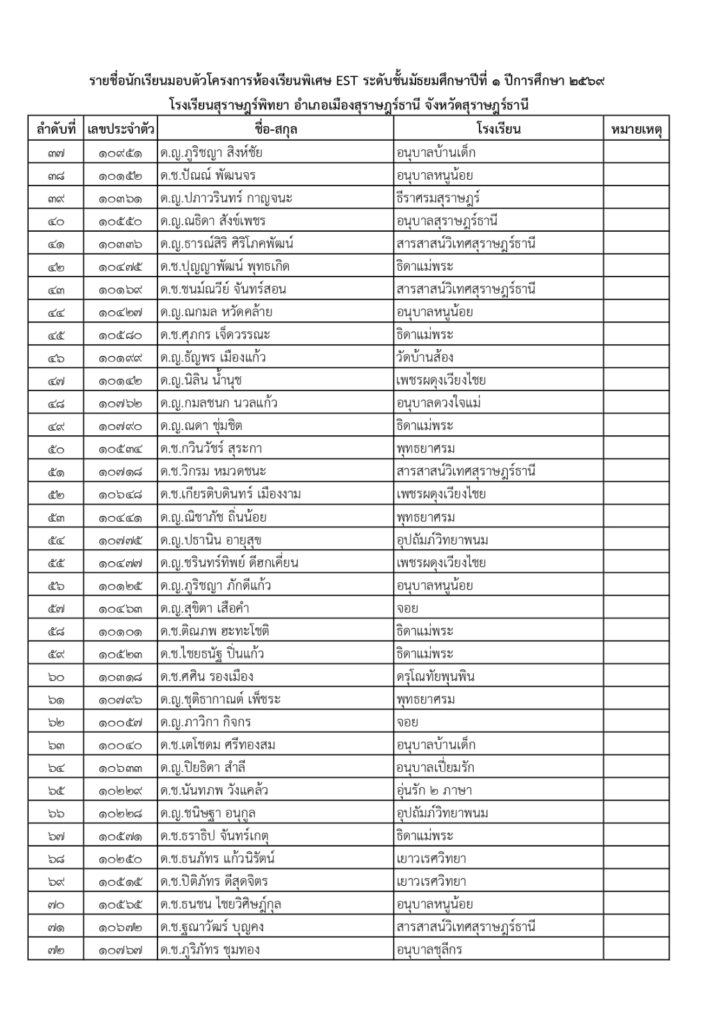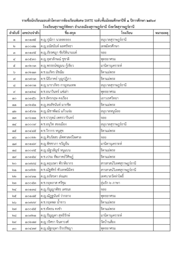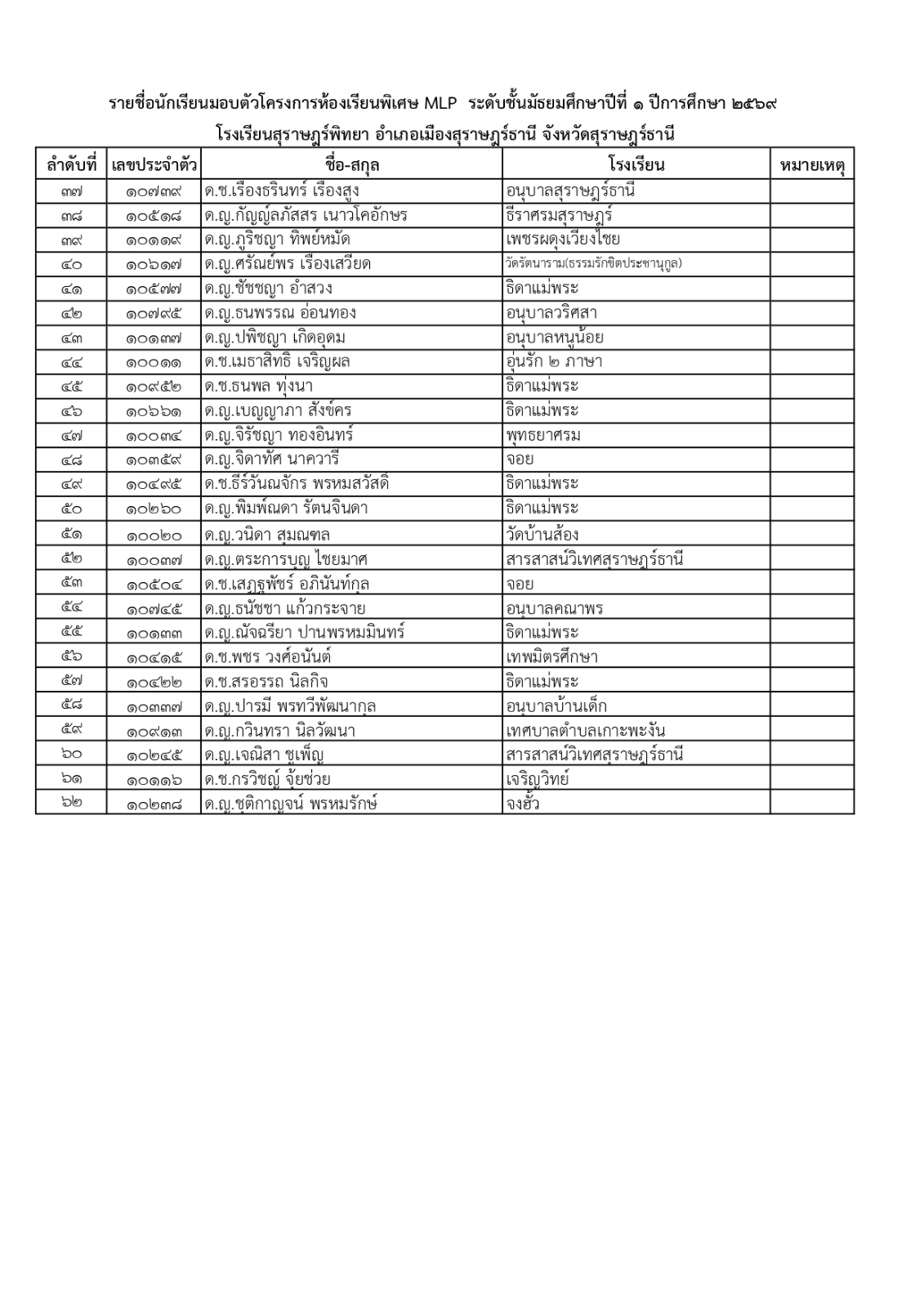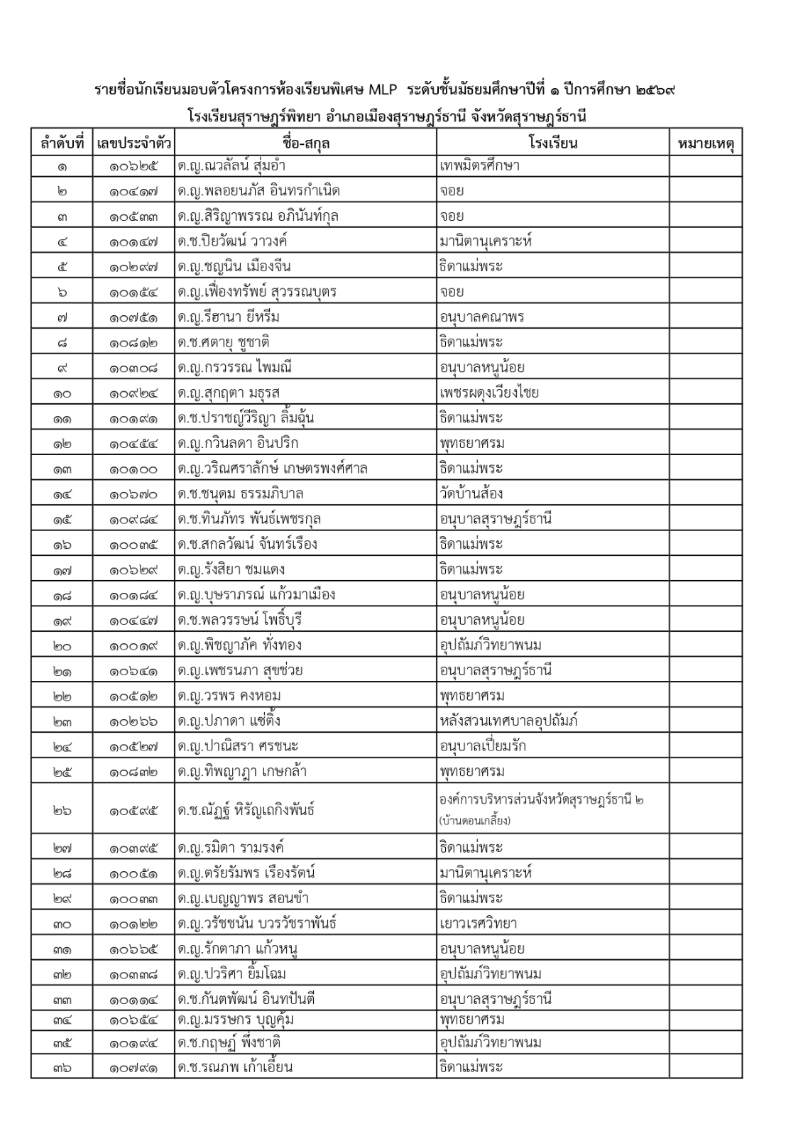 รายชื่อนักเรียนมอบตัว โครงการห้องเรียนพิเศษ ระดับชั้นมัธยมศึกษาปีที่ 1 ปีการศึกษา 2569 / ข่าวประกาศ, โครงการห้องเรียนพิเศษ / By สุธน ภักดี Post Views: 15