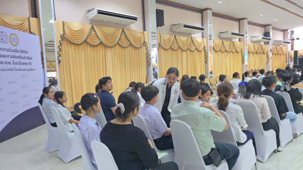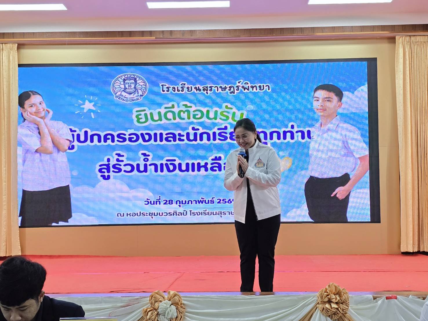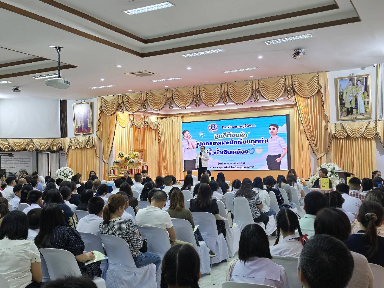 มอบตัวนักเรียนโครงการห้องเรียนพิเศษ ม.1 ปีการศึกษา 2569 / ข่าวประชาสัมพันธ์, โครงการห้องเรียนพิเศษ / By สุธน ภักดี วันเสาร์ที่ 28 กุมภาพันธ์ 2569 เวลา 09.00 น. นางผกา สามารถ ผู้อำนวยการโรงเรียนสุราษฎร์พิทยา พร้อมด้วยคณะครู โรงเรียนสุราษฎร์พิทยา ร่วมต้อนรับผู้ปกครองและนักเรียน มอบตัวนักเรียนโครงการห้องเรียนพิเศษ ระดับชั้นมัธยมศึกษาปีที่ 1 ประจำปีการศึกษา 2569 ณ หอประชุมบวรศิลป์ โรงเรียนสุราษฎร์พิทยา Post Views: 23